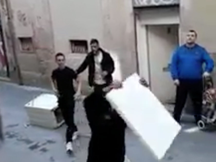 Multitudinaria pelea entre lateros y manteros en el centro de Barcelona y a plena luz del día