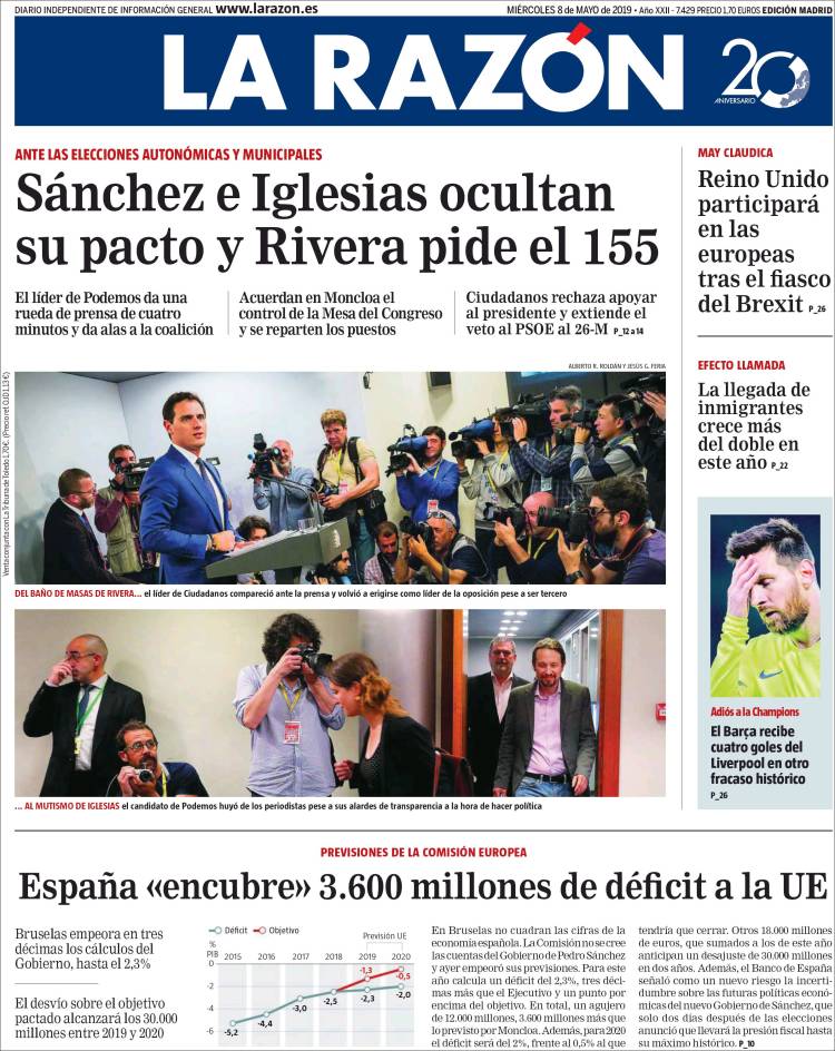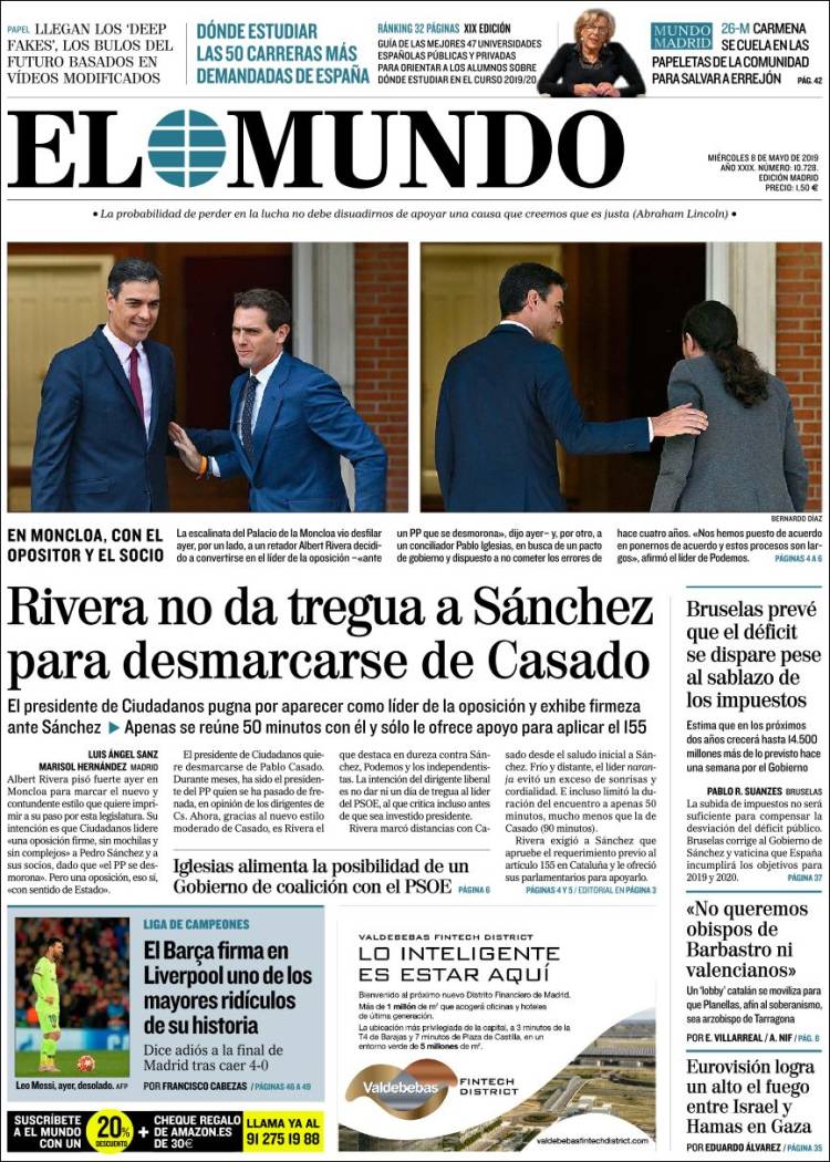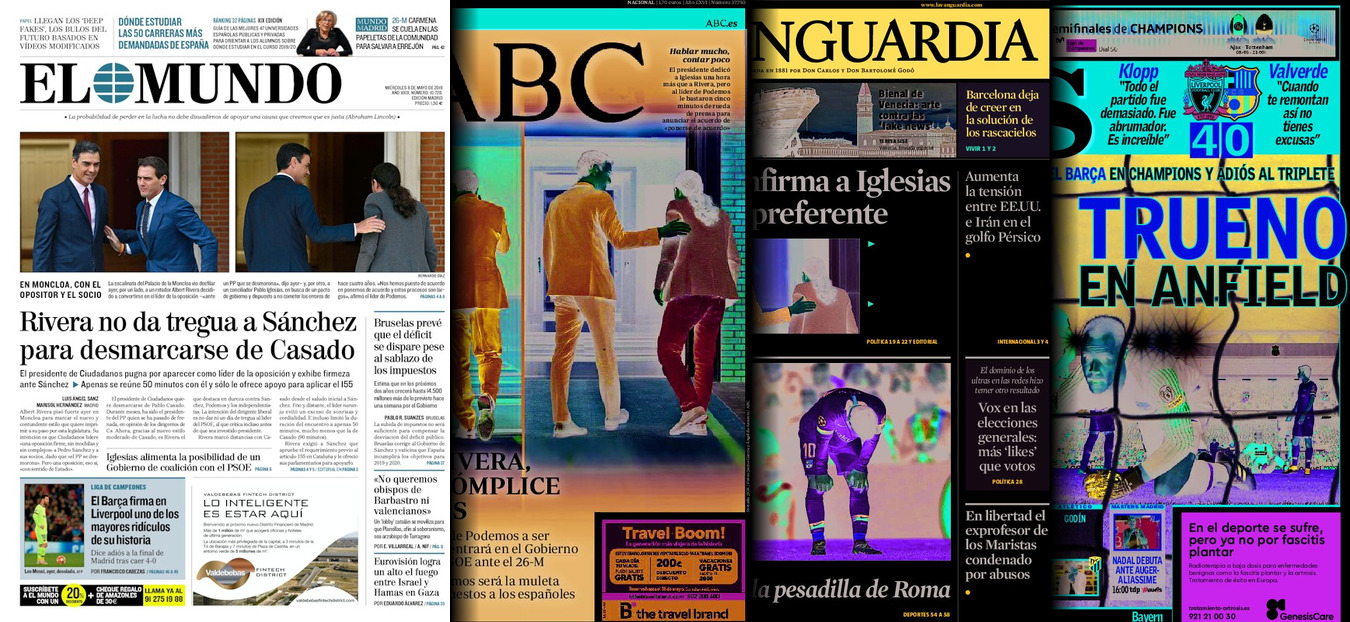 Portadas de los diarios El Mundo, El País, ABC, La Razón, La Vanguardia, El Periódico, CincoDías, El Economista, Marca, As y Mundo Deportivo..