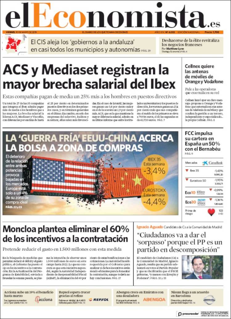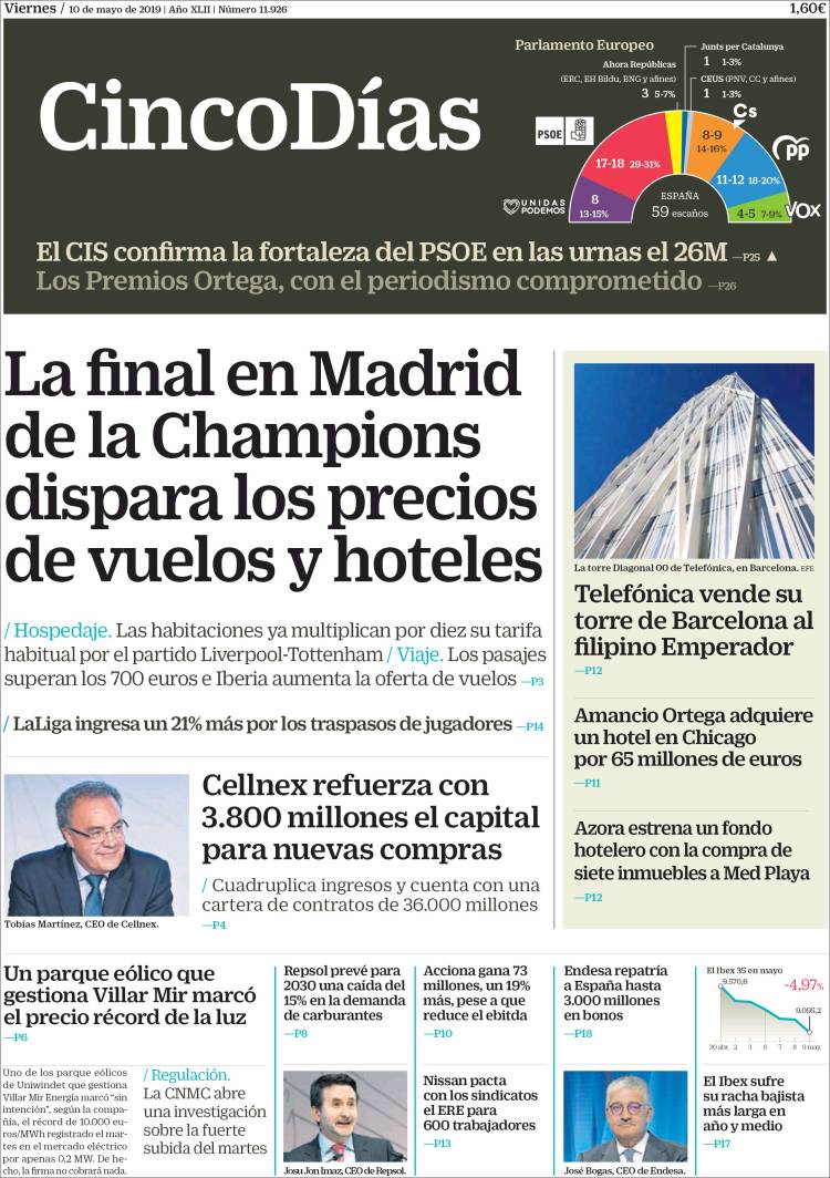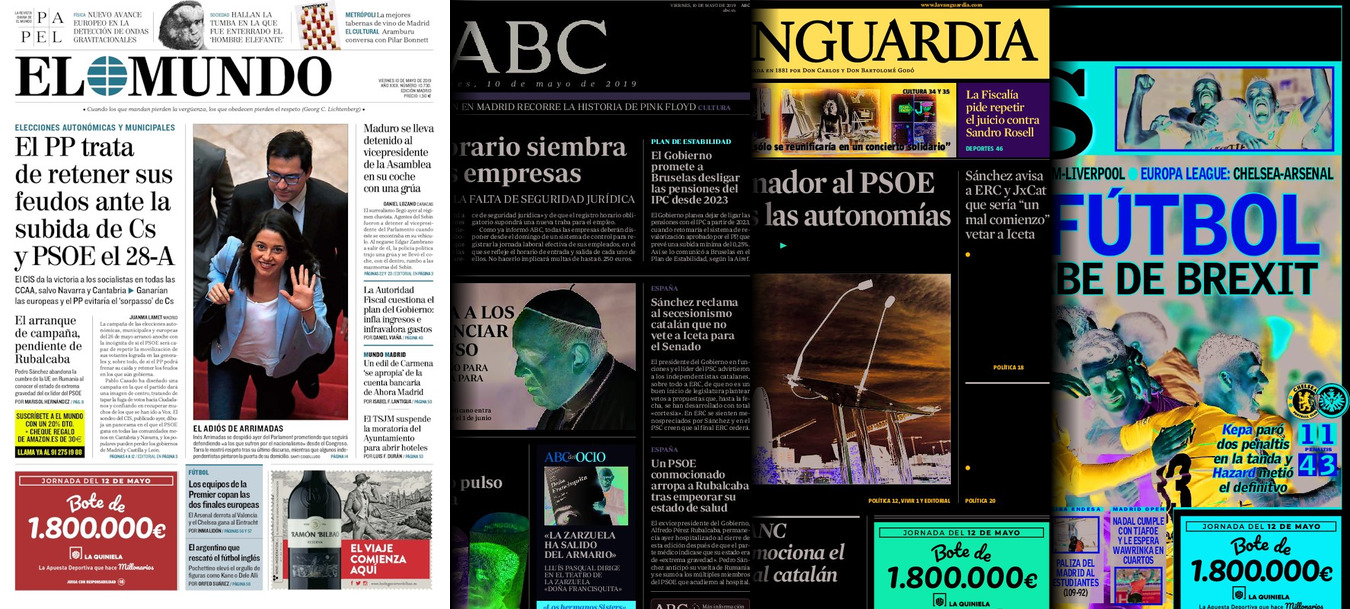 Portadas de los diarios El Mundo, El País, ABC, La Razón, La Vanguardia, CincoDías, El Economista, Marca, As y Mundo Deportivo.