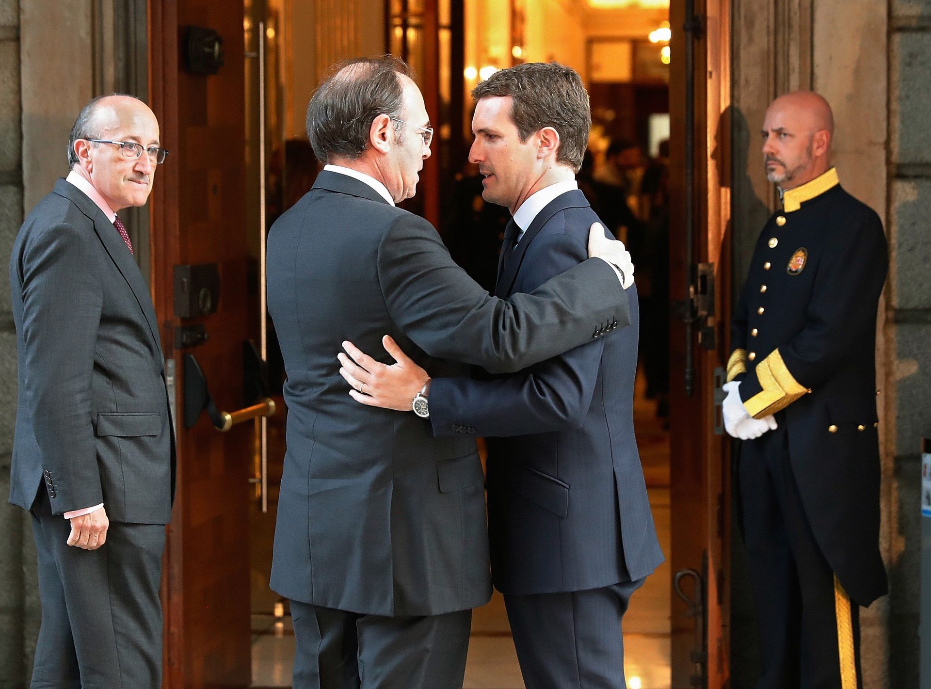 El líder de los populares ha sido uno de los primeros en llegar a la capilla ardiente para dar el pésame a la familia.
