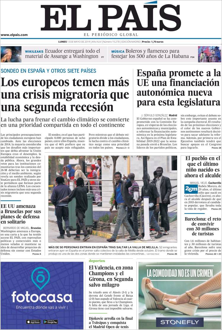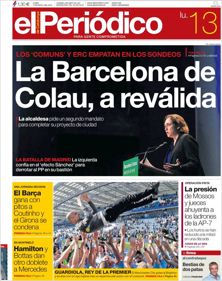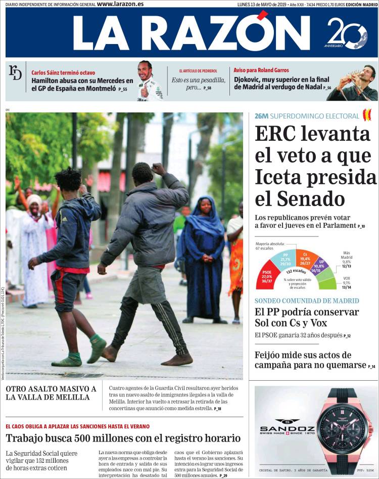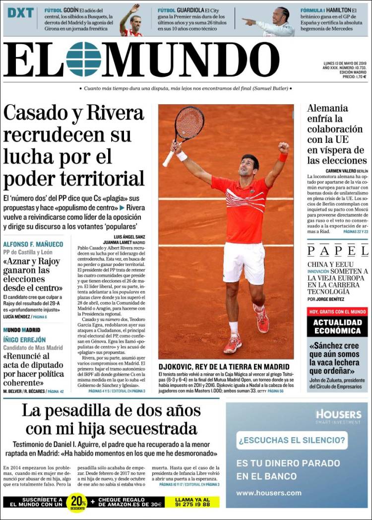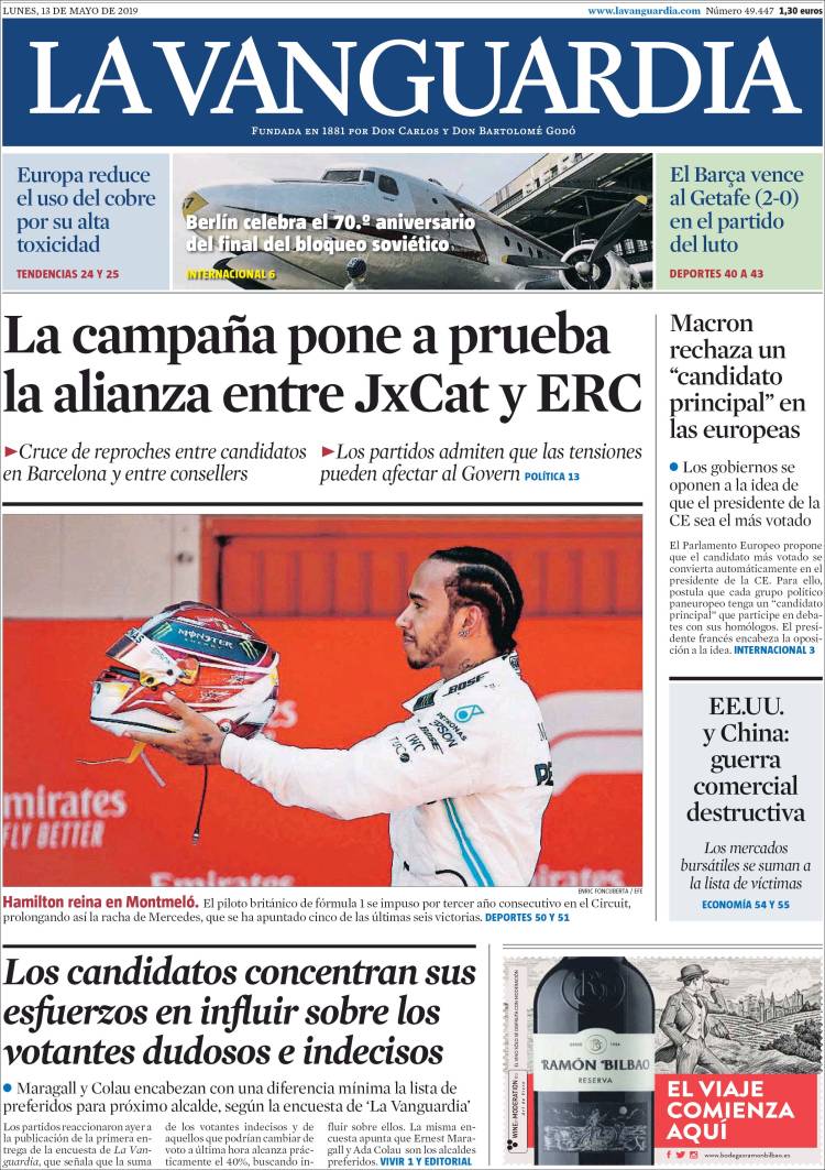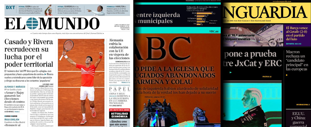 Portadas de los diarios El Mundo, El País, ABC, La Razón, La Vanguardia, El Periódico, CincoDías, El Economista, Marca, As, Mundo Deportivo y Sport.