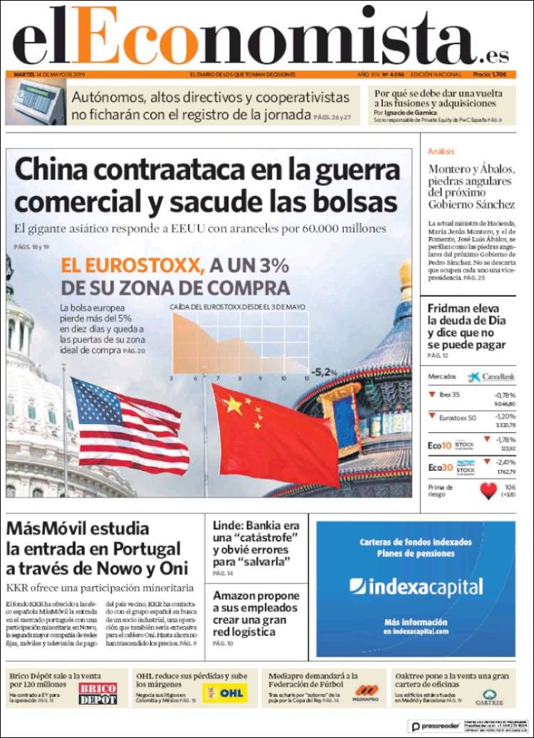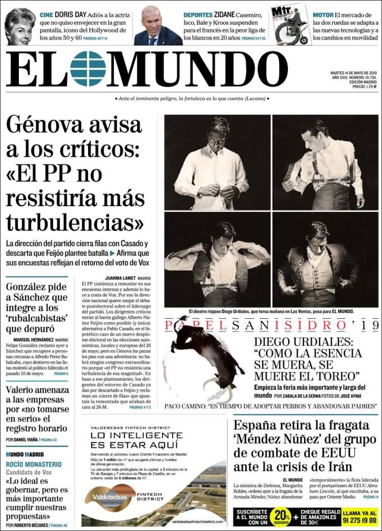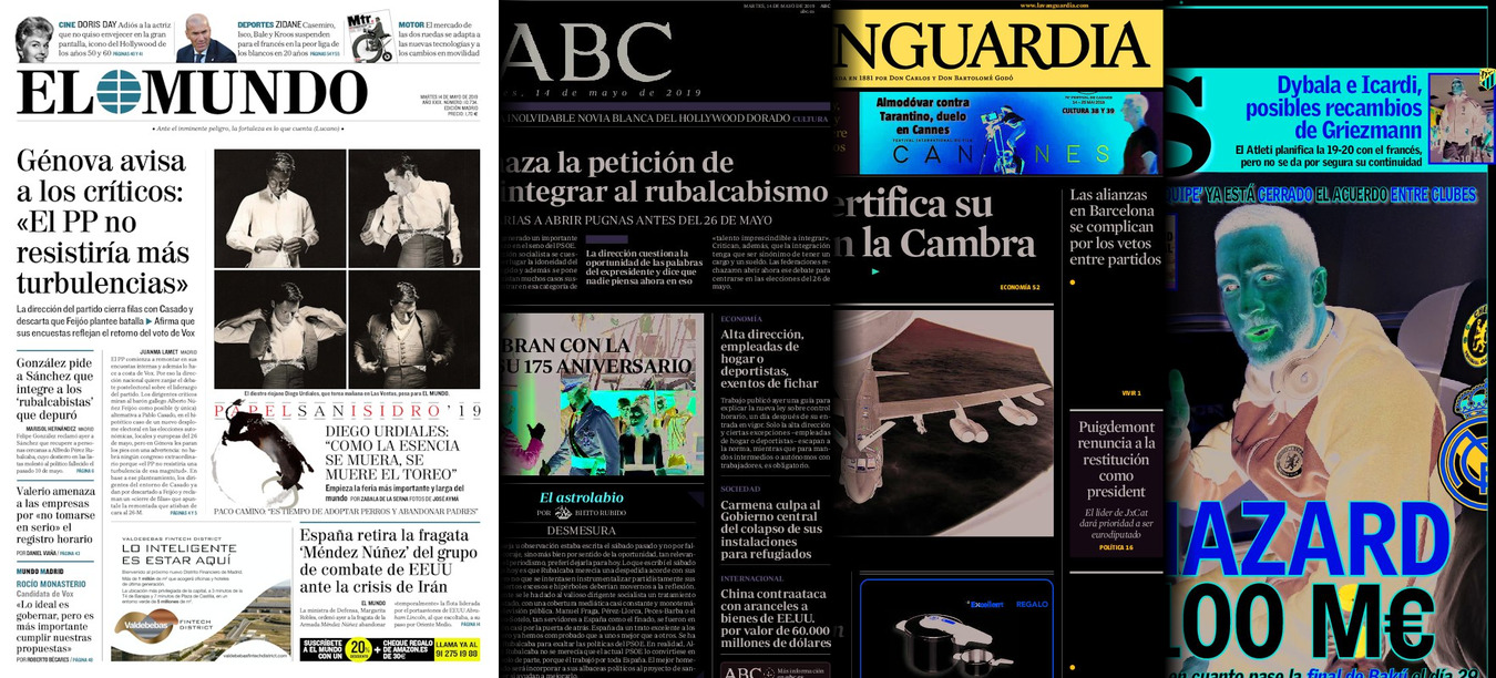 Portadas de los diarios El Mundo, El País, ABC, La Razón, La Vanguardia, El Periódico, El Economista, Marca, As, Mundo Deportivo y Sport.