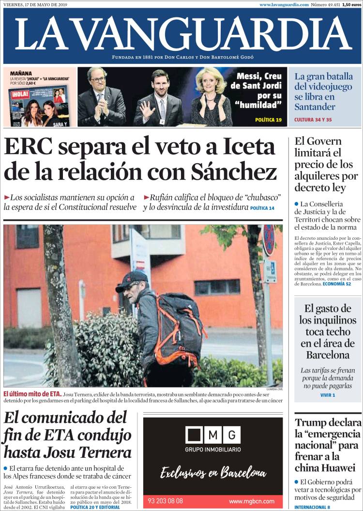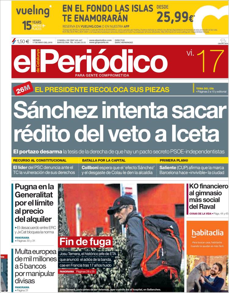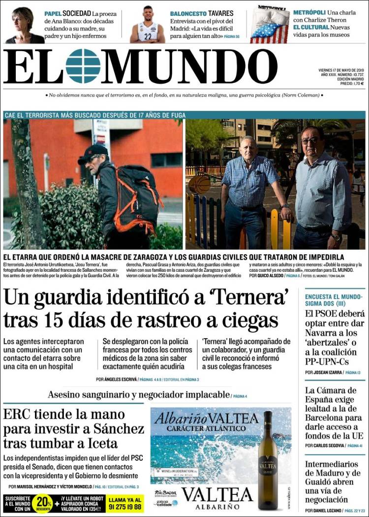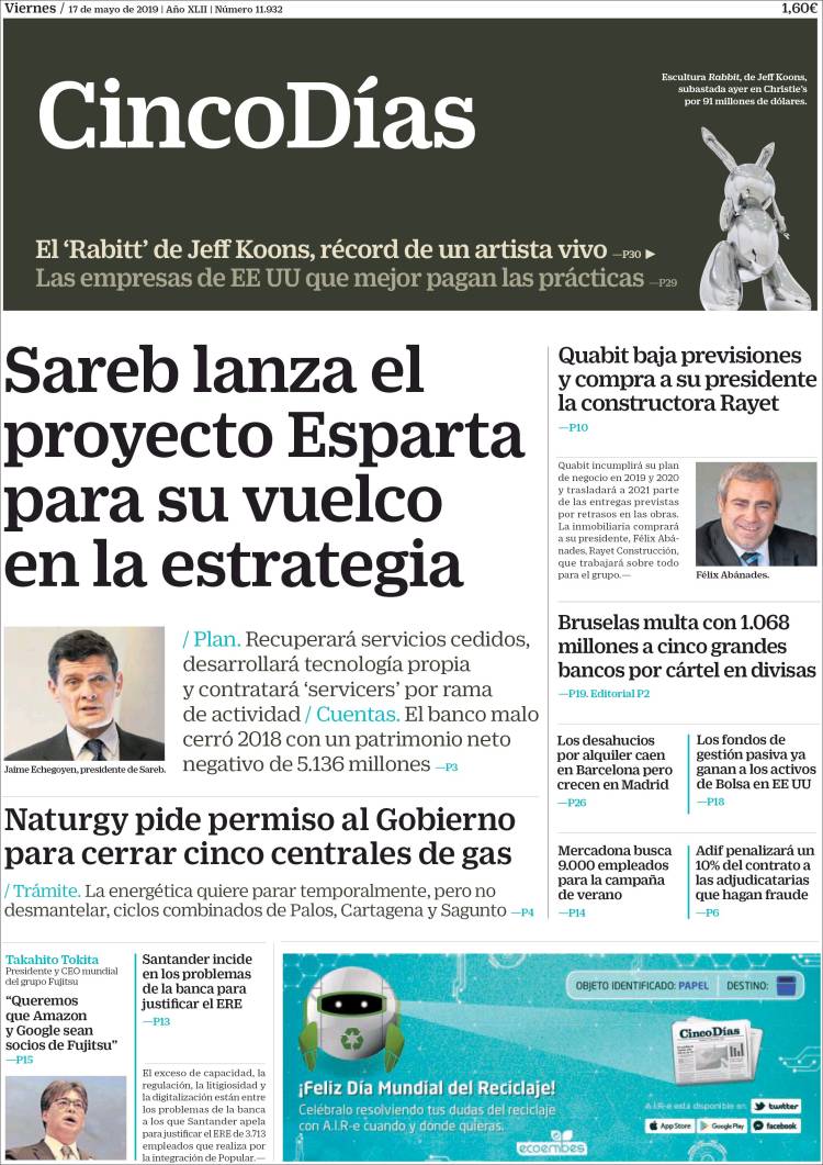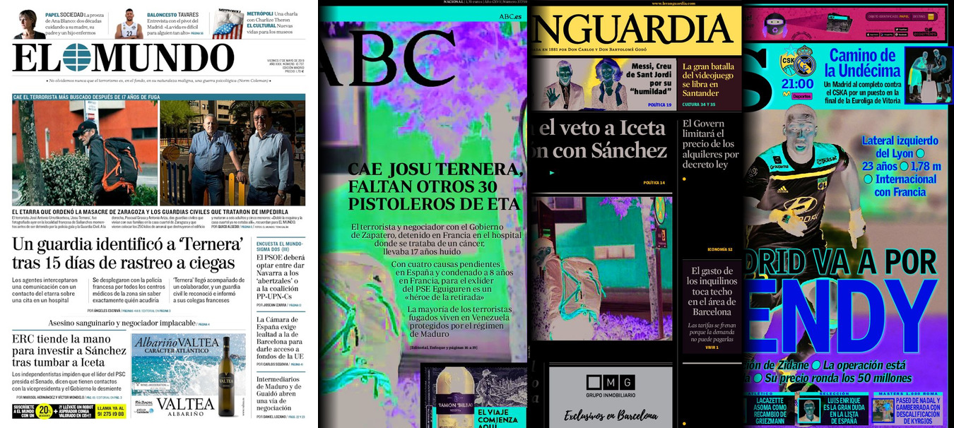 Portadas de los diarios El Mundo, El País, ABC, La Razón, La Vanguardia, El Periódico, CincoDías, El Economista, Marca, As, Mundo Deportivo y Sport.