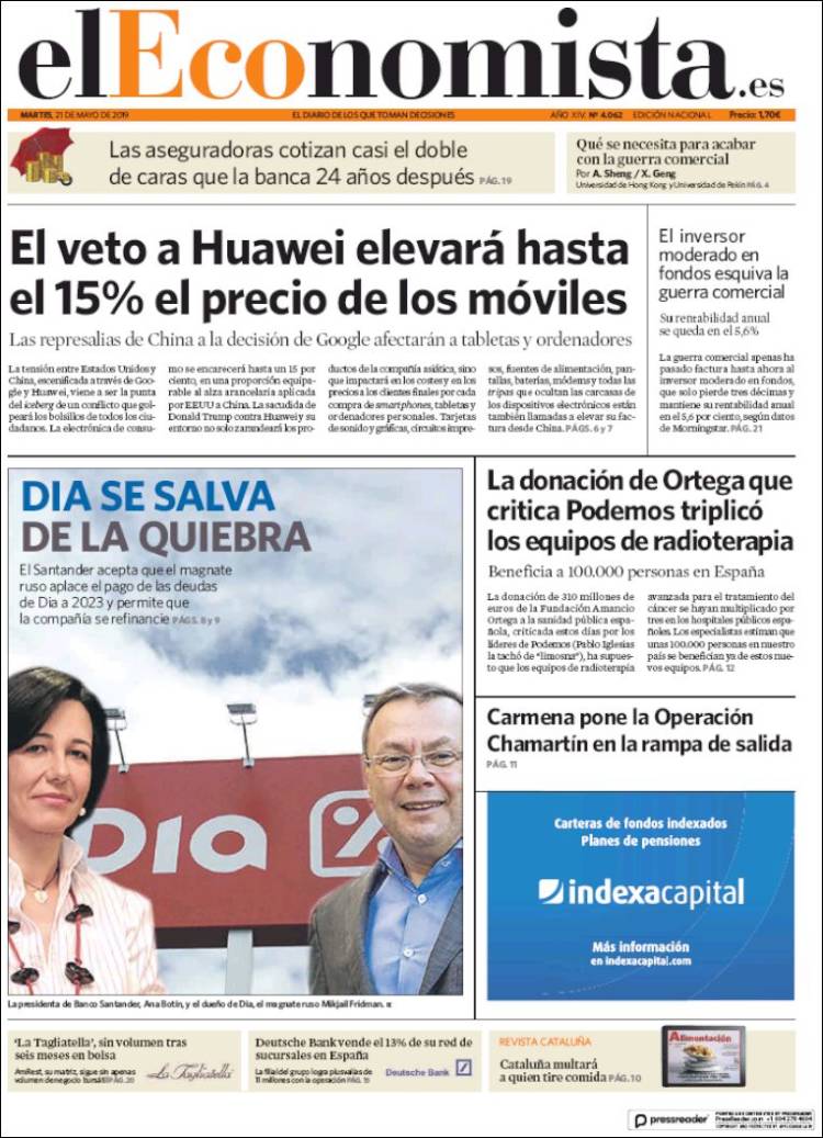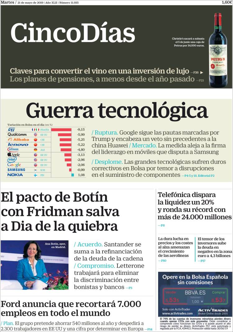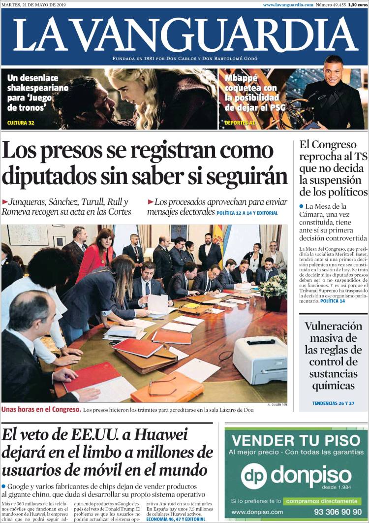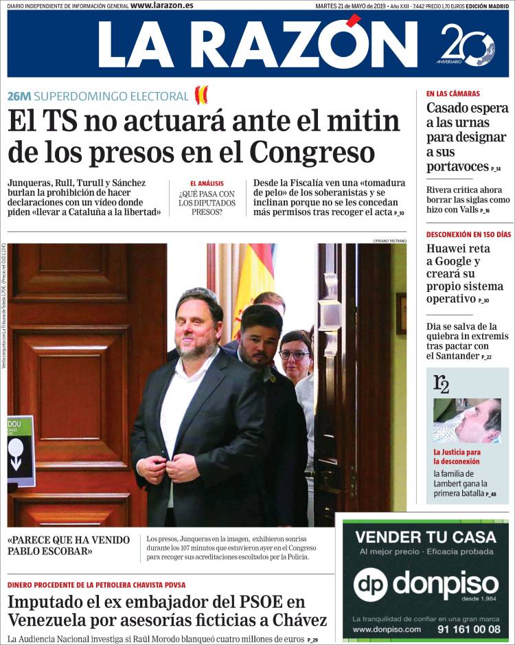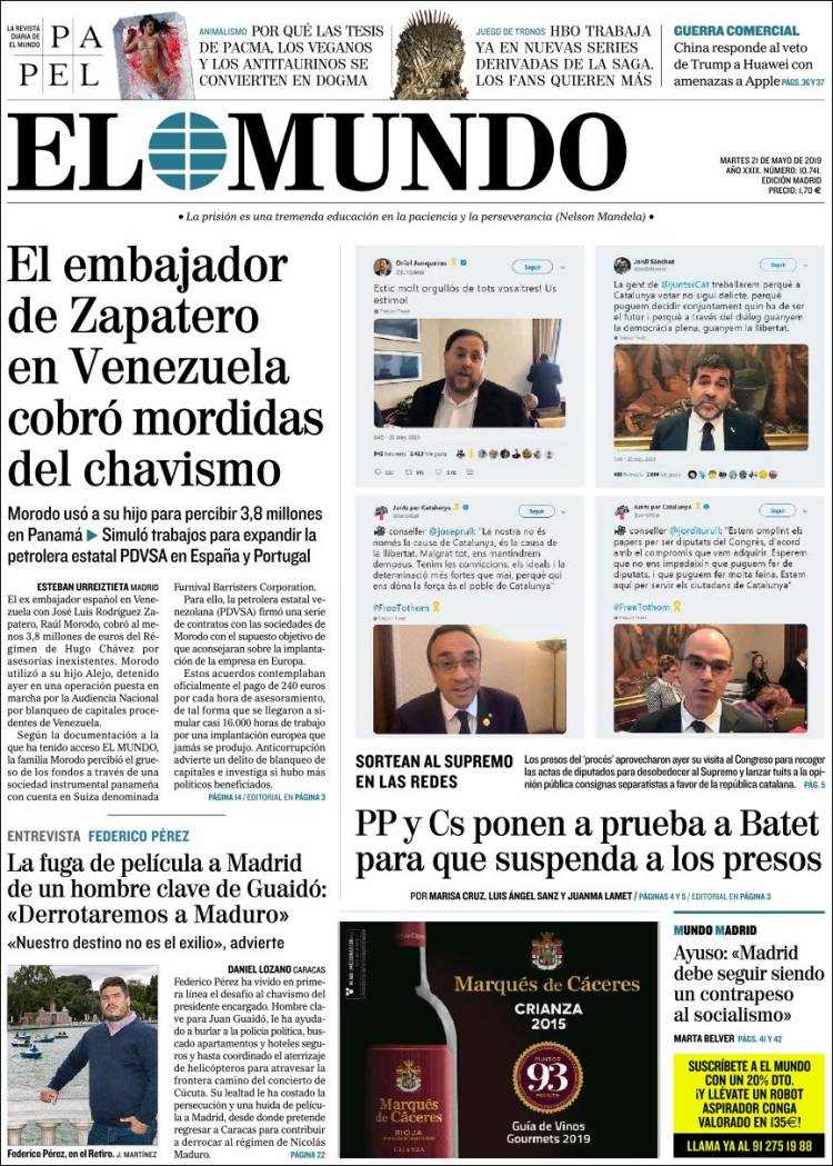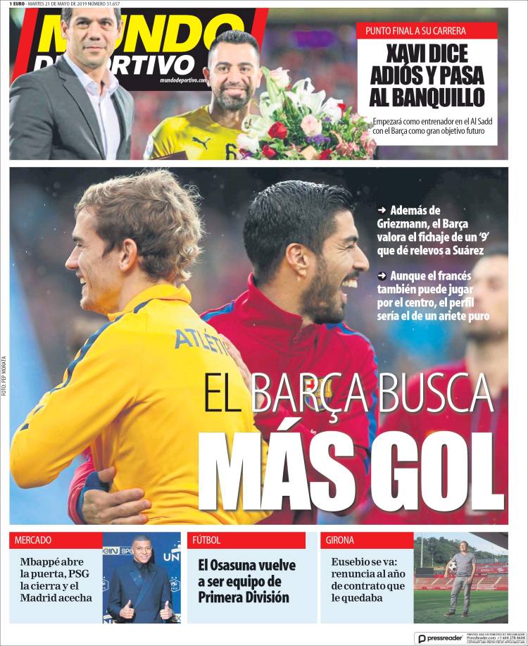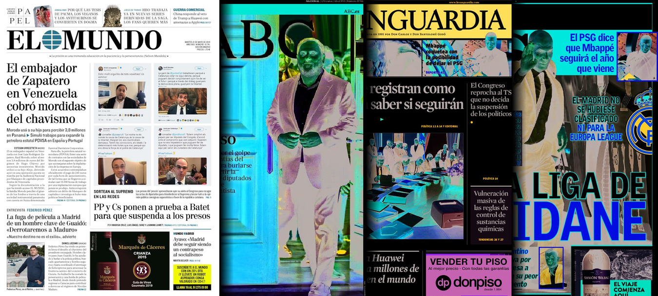 Portadas de los diarios El Mundo, El País, ABC, La Razón, La Vanguardia, El Periódico, CincoDías, El Economista, Marca, As, Mundo Deportivo y Sport.