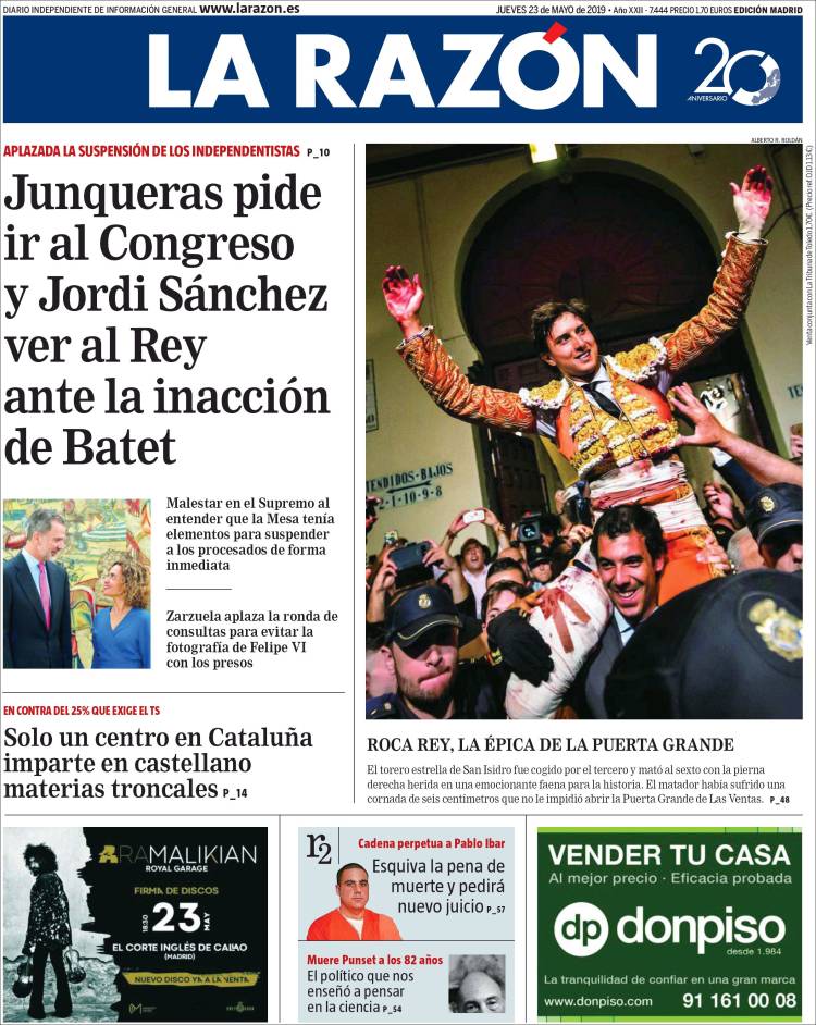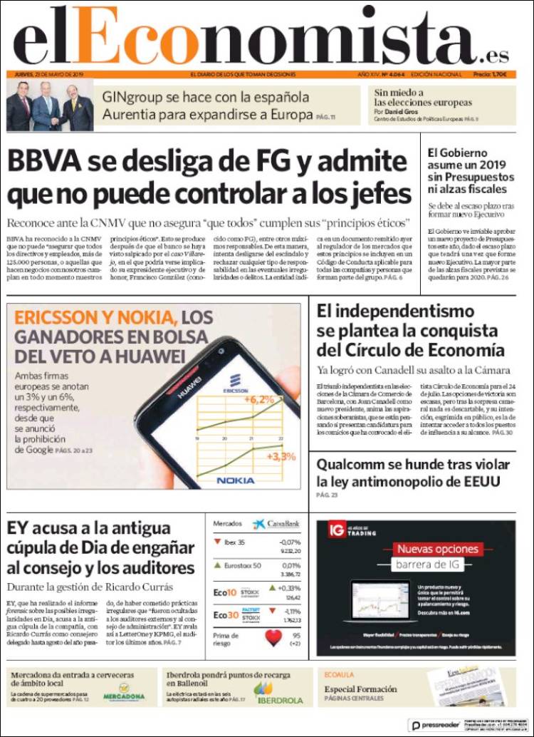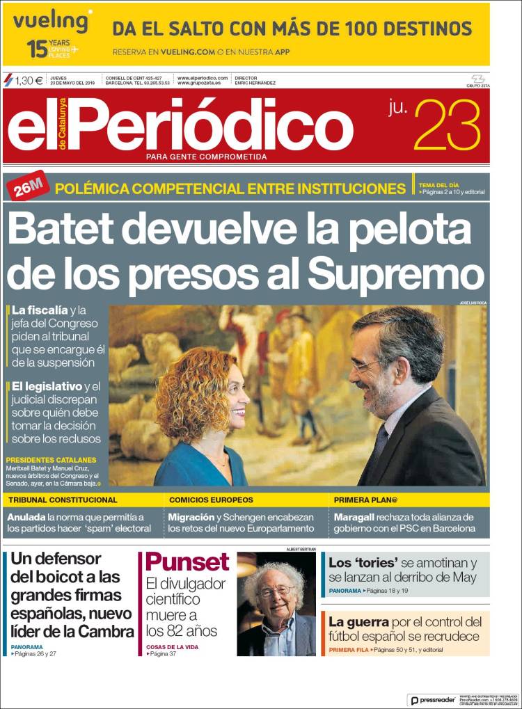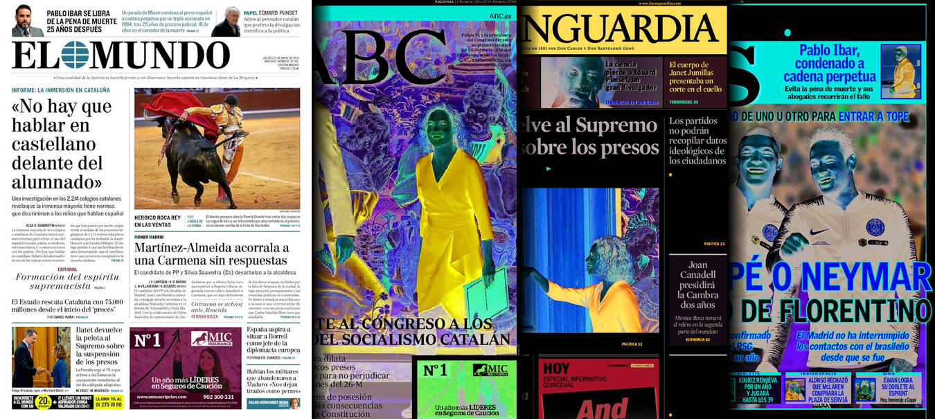 Portadas de los diarios El Mundo, El País, ABC, La Razón, La Vanguardia, El Periódico, CincoDías, El Economista, Marca, As y Mundo Deportivo.