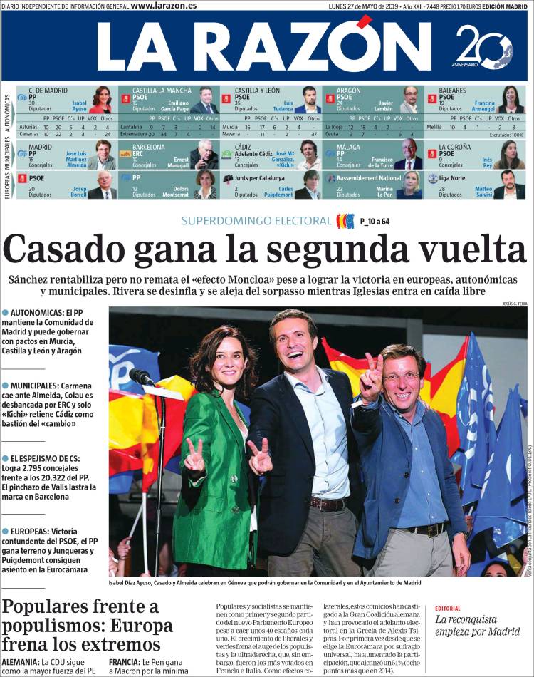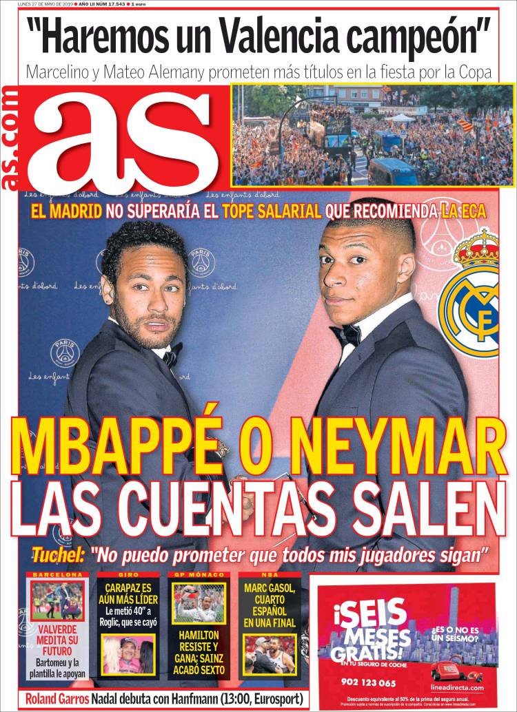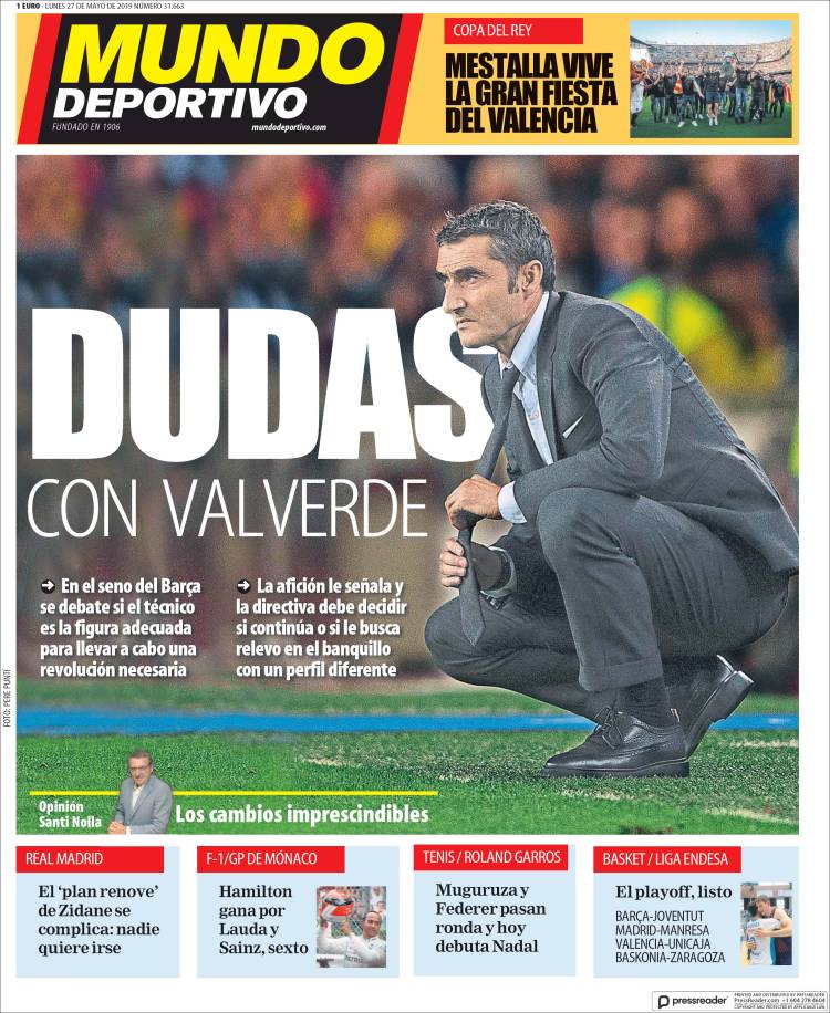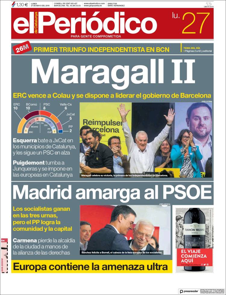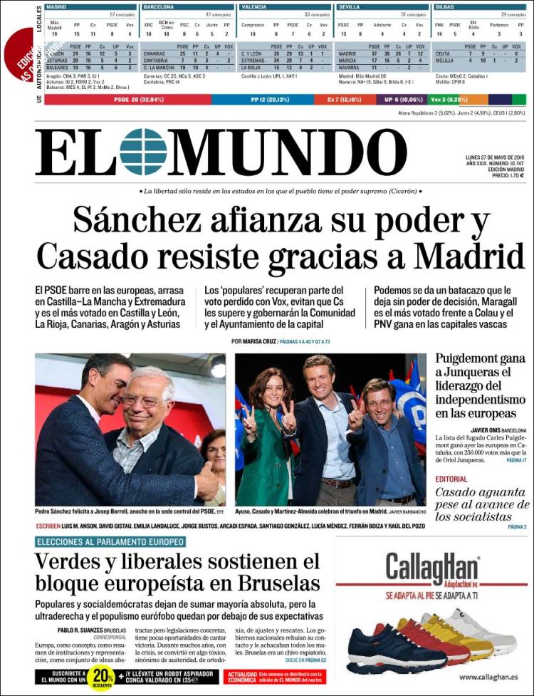Portadas de los diarios El Mundo, El País, ABC, La Razón, La Vanguardia, El Periódico, CincoDías, El Economista, Marca, As, Mundo Deportivo y Sport.