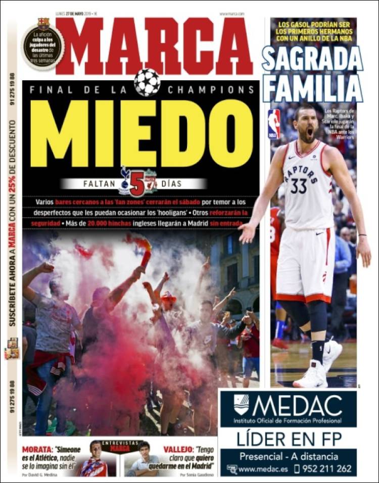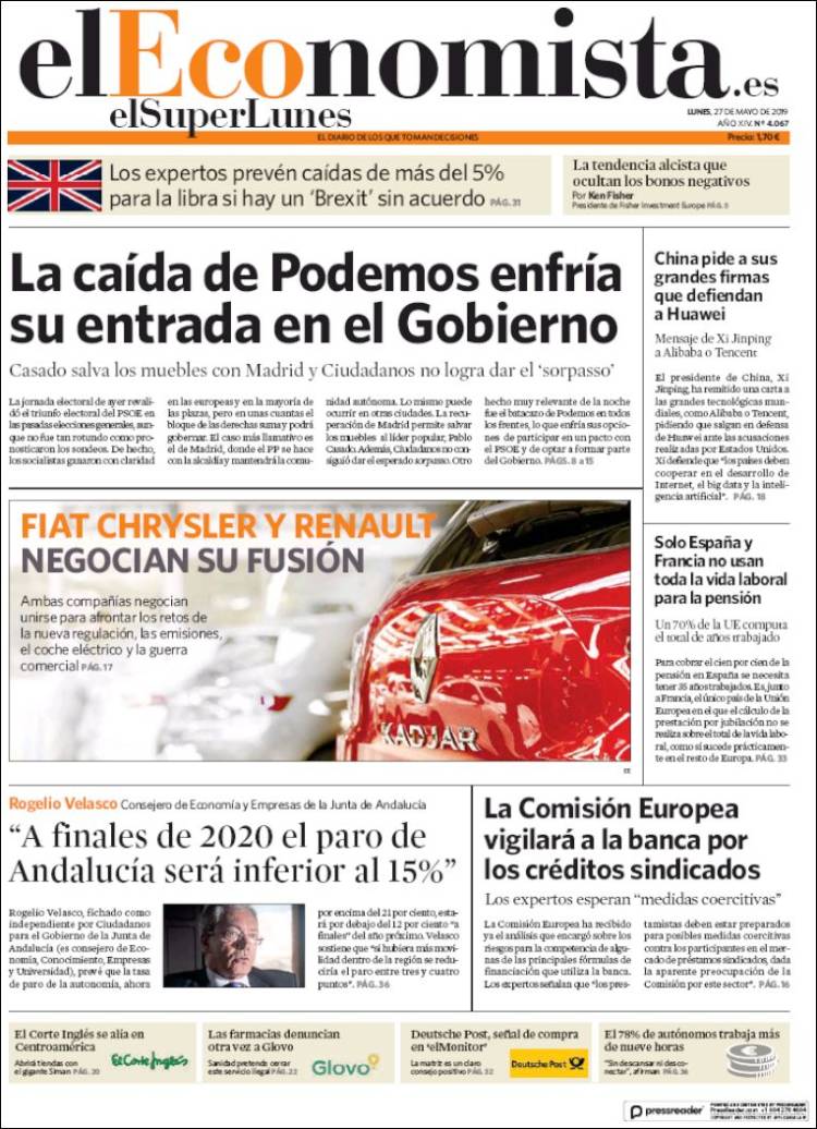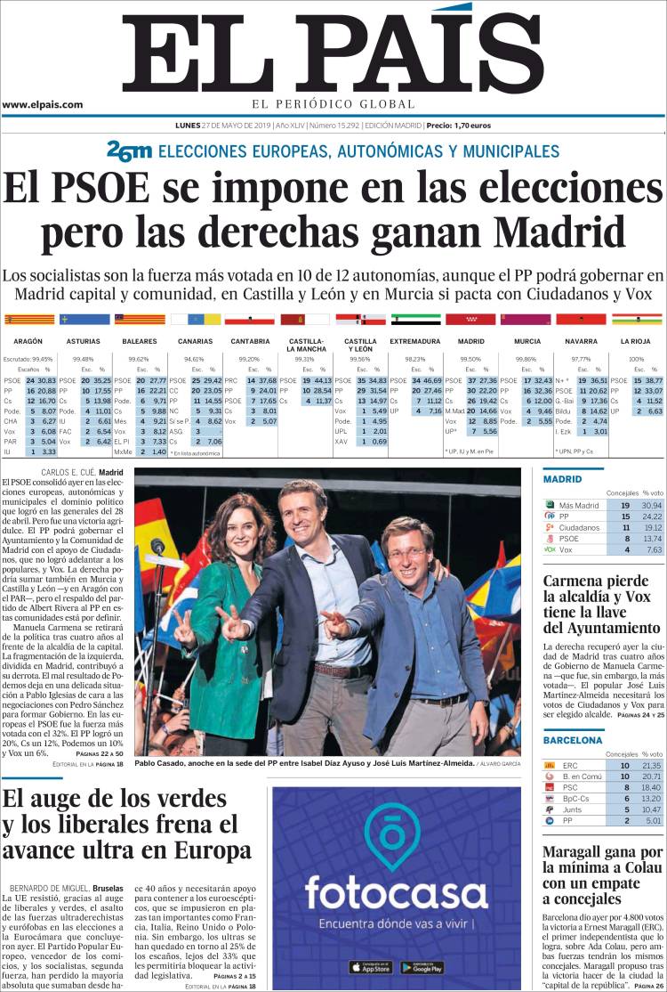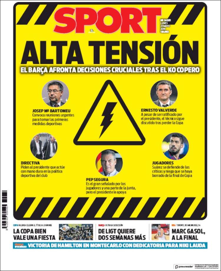Portadas de los diarios El Mundo, El País, ABC, La Razón, La Vanguardia, El Periódico, CincoDías, El Economista, Marca, As, Mundo Deportivo y Sport.