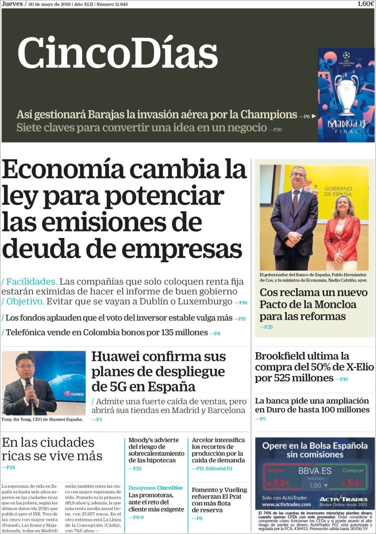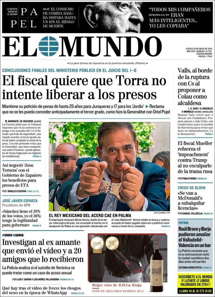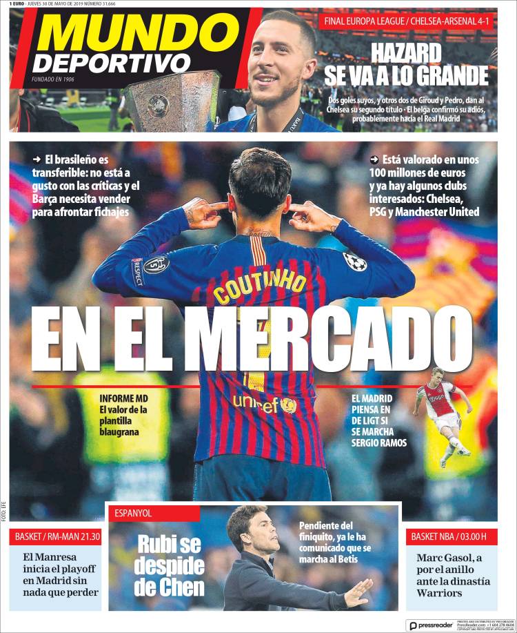 Portadas de los diarios El Mundo, El País, ABC, La Razón, La Vanguardia, El Periódico, CincoDías, El Economista, Marca, As y Mundo Deportivo.