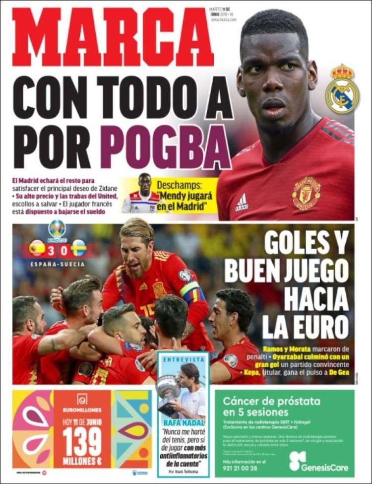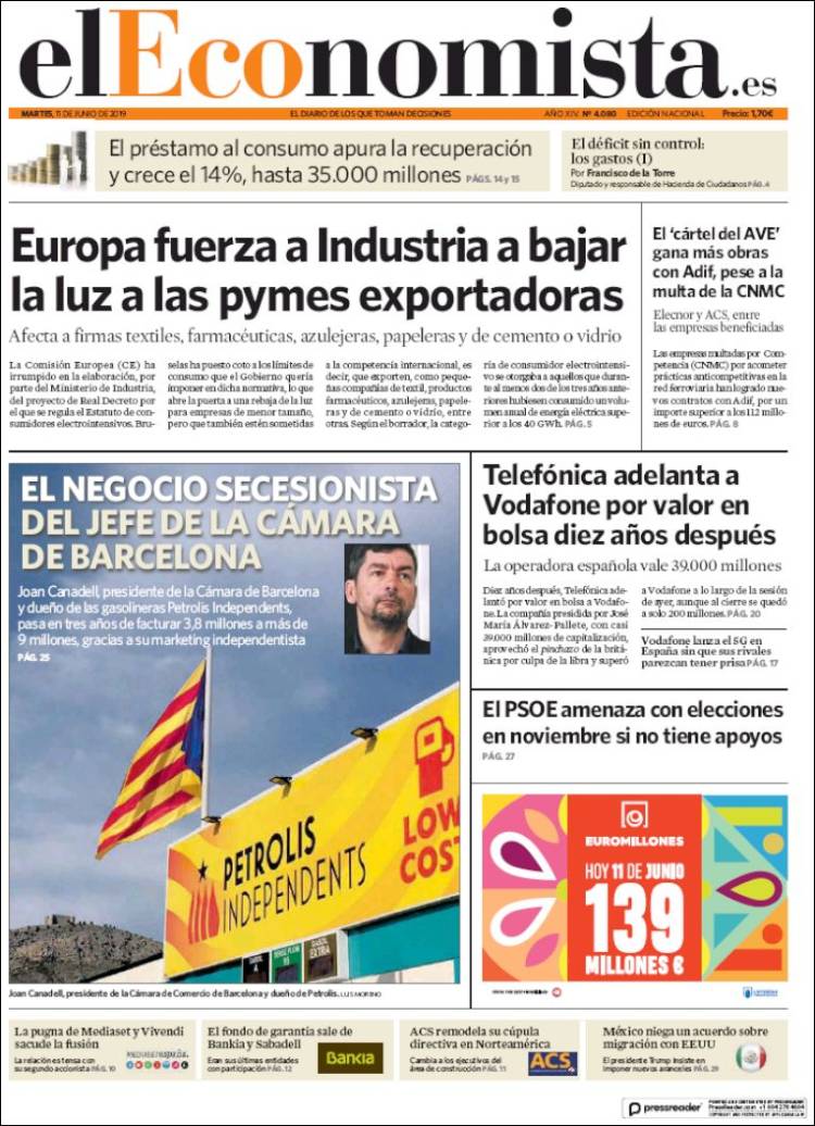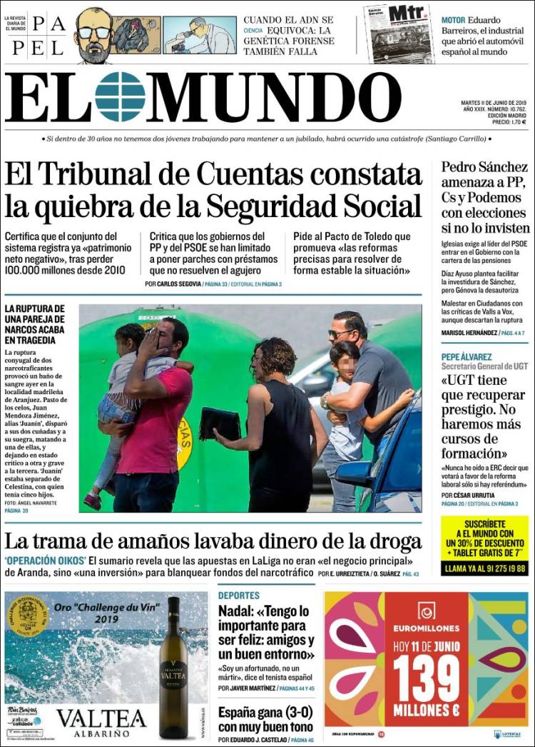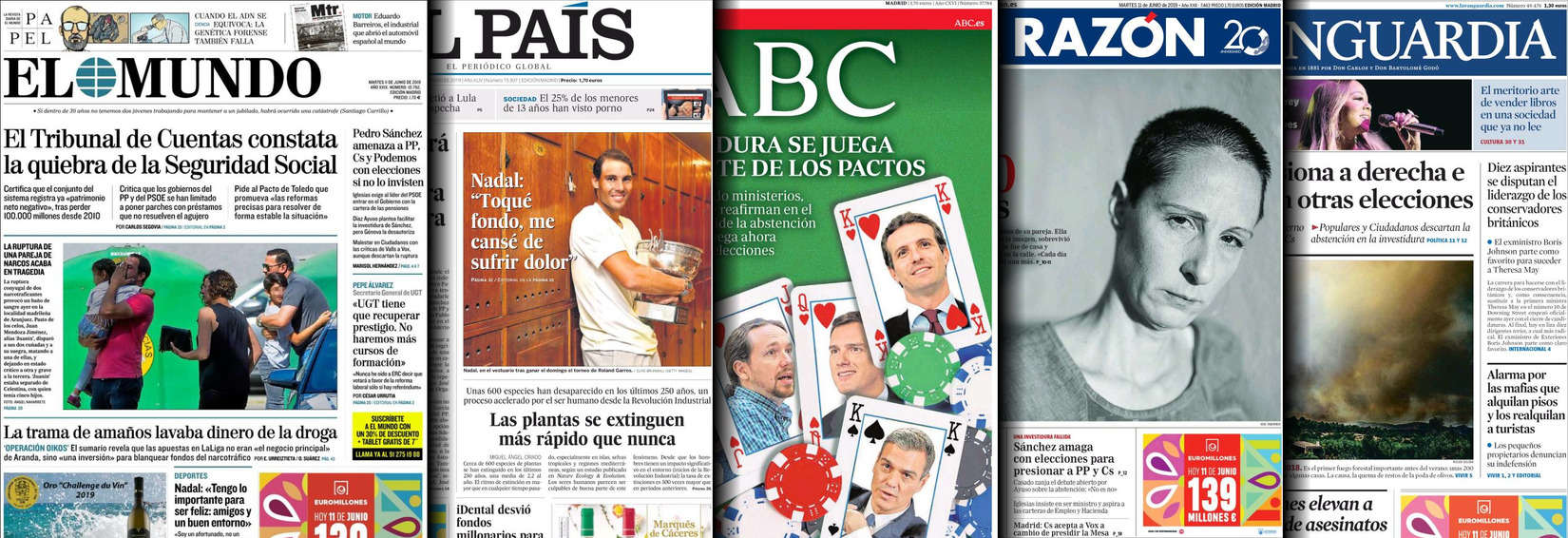 Portadas de los diarios El Mundo, El País, ABC, La Razón, La Vanguardia, El Periódico, CincoDías, El Economista, Marca, As y Mundo Deportivo.