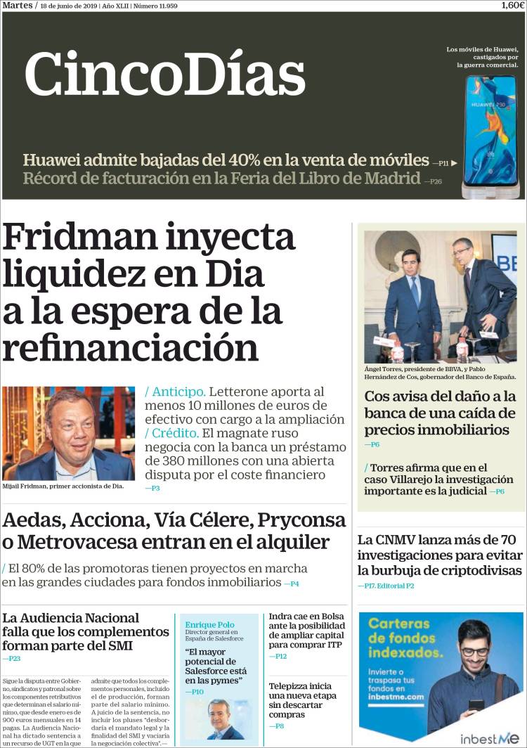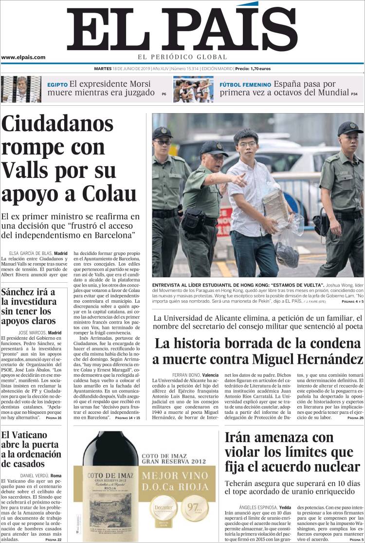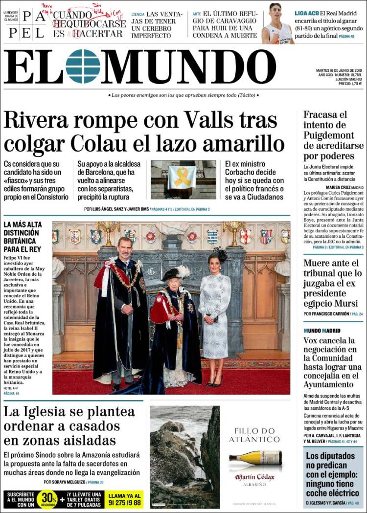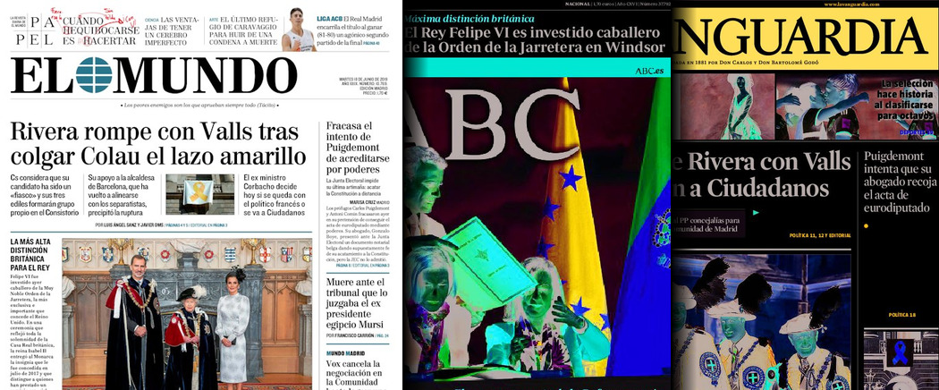 Portadas de los diarios El Mundo, El País, ABC, La Razón, La Vanguardia, El Periódico, CincoDías, El Economista, Marca, AS, Mundo Deportivo y Sport.