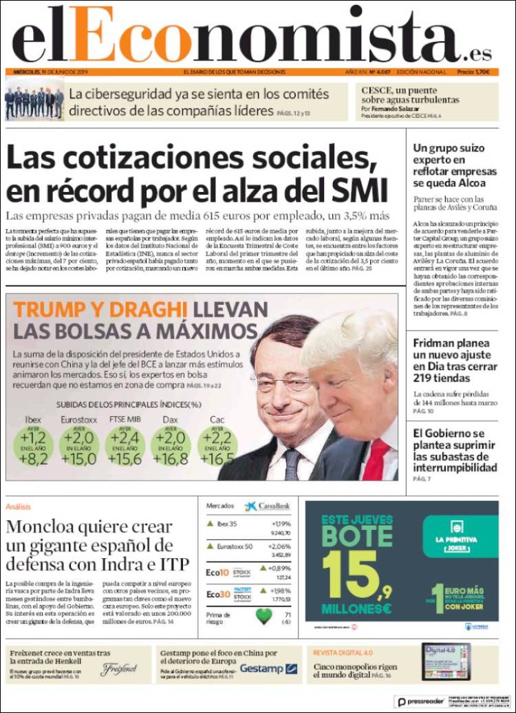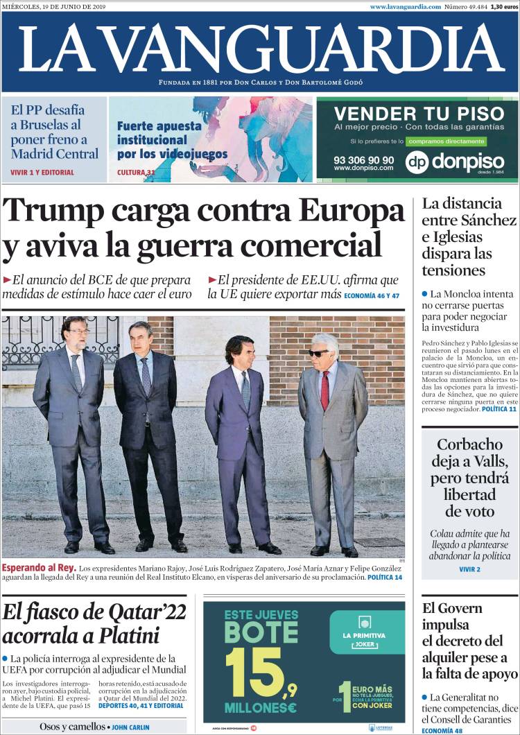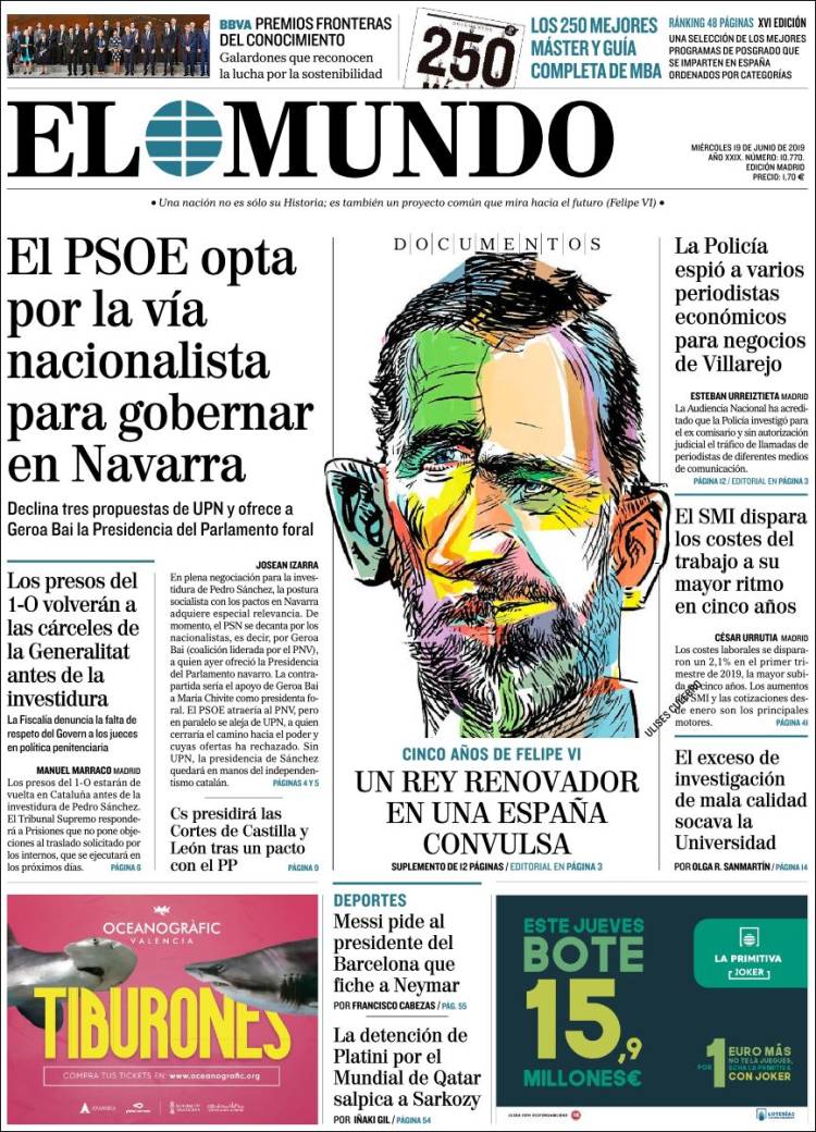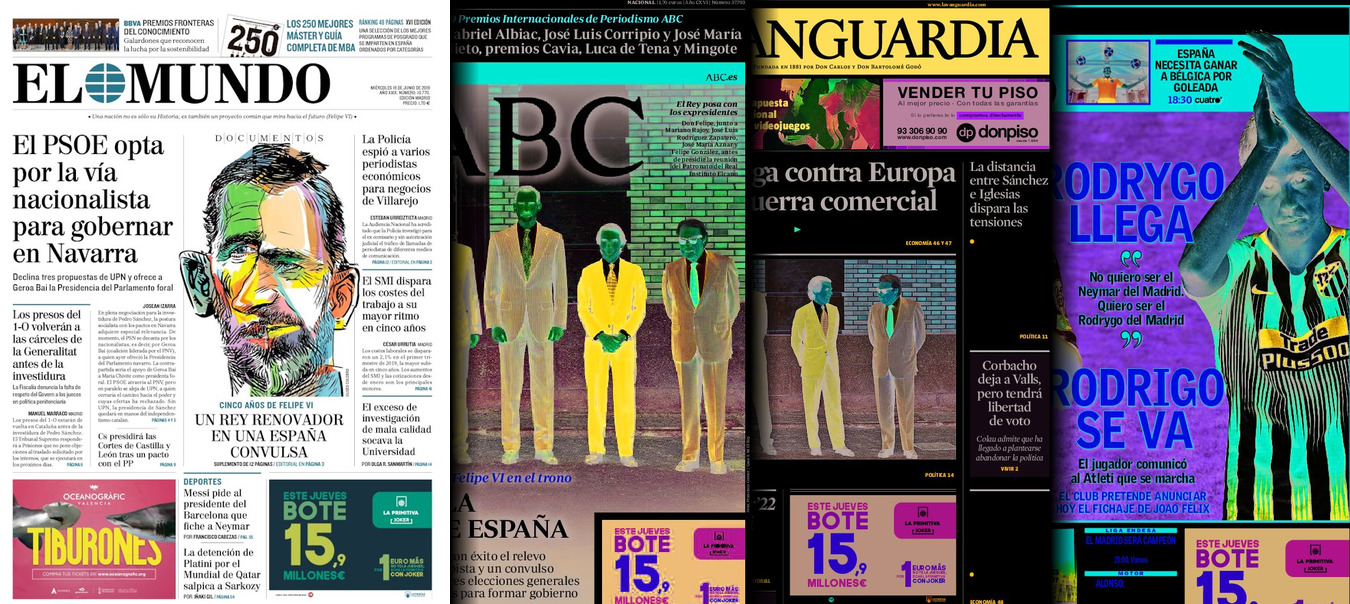 Portadas de los diarios El Mundo, El País, ABC, La Razón, La Vanguardia, El Periódico, CincoDías, El Economista, Marca, AS, Mundo Deportivo y Sport.