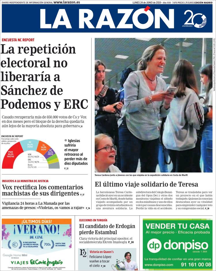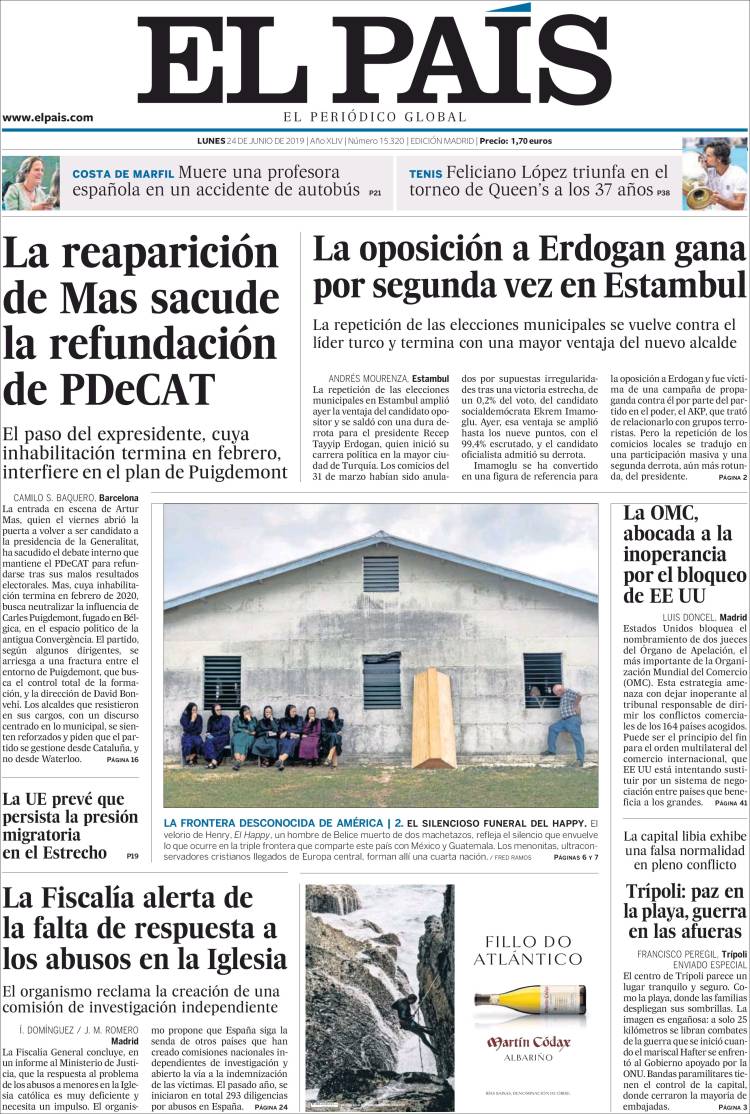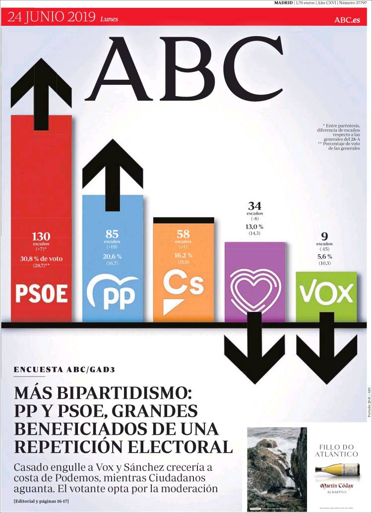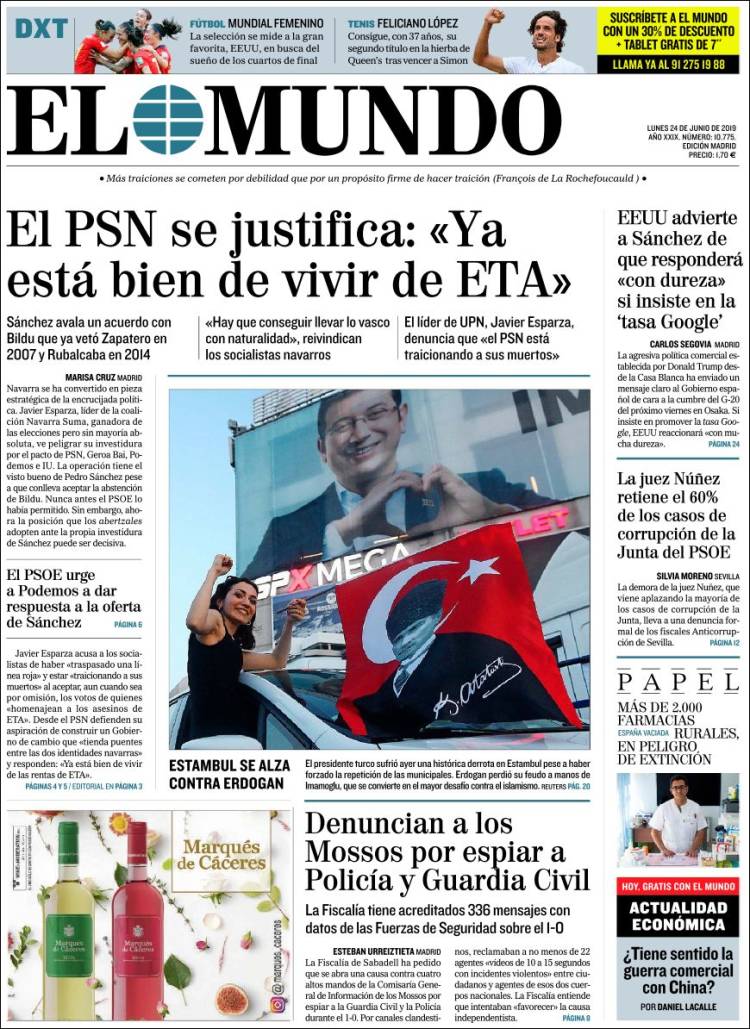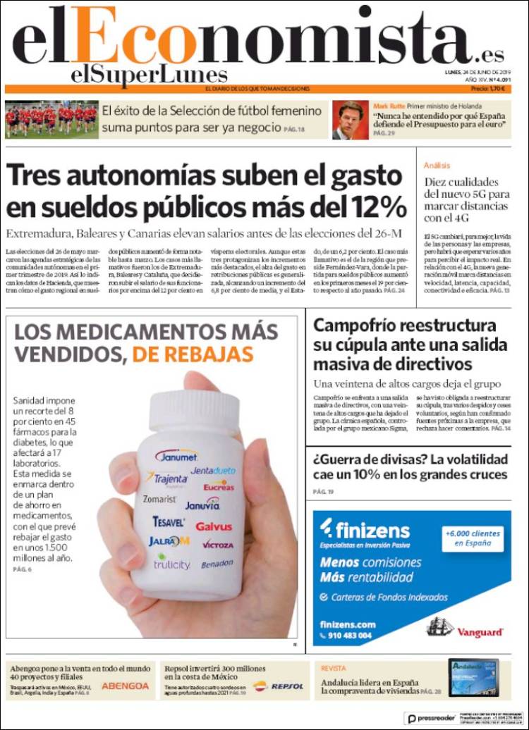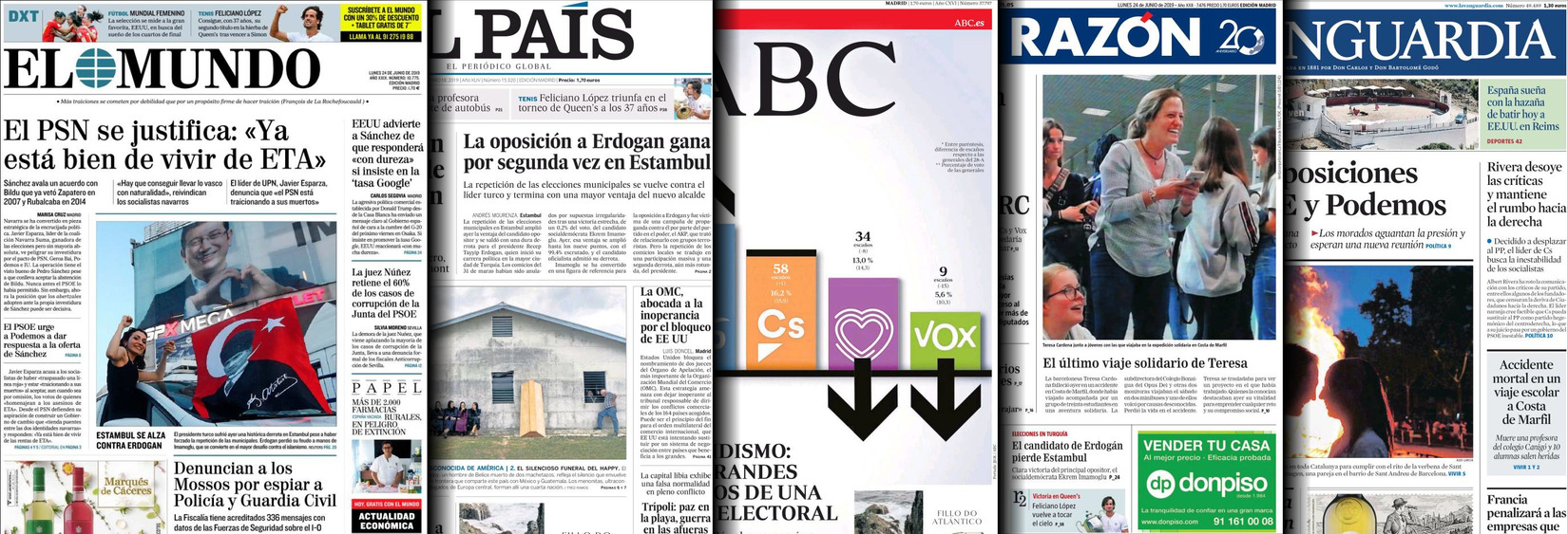 Portadas de los diarios El Mundo, El País, ABC, La Razón, La Vanguardia, El Periódico, CincoDías, El Economista, Marca, AS, Mundo Deportivo y Sport..