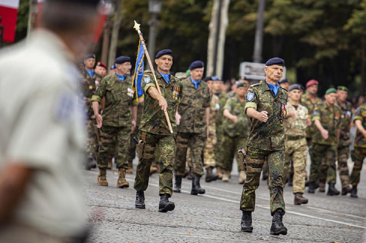 Seis militares españoles, encabezados por el general Fernando García Blázquez desfilaron junto a las fuerzas del Eurocuerpo en el desfile del 14 de Julio.