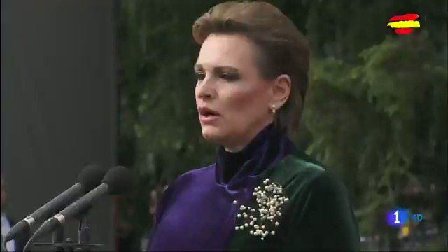 La soprano ha cantado "La muerte no es el final" durante el desfile de la Fiesta Nacional.