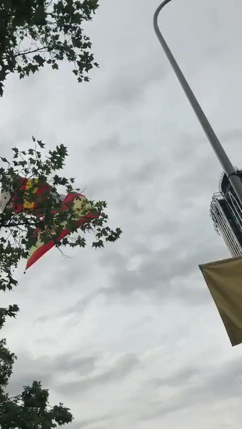 El paracaidista que llevaba la bandera de España en el desfile del 1-O tuvo un percance al aterrizar.