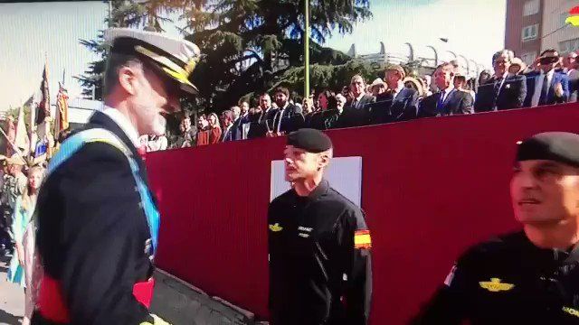 Pedro Sánchez fue apercibido por protocolo para que se mantuviera a una cierta distancia y no invadiera el momento, en el que el Rey, la Reina y la princesa de Asturias y la infanta Sofía conversaron brevemente con el militar, que impactó con una farola en el momento de tocar suelo.