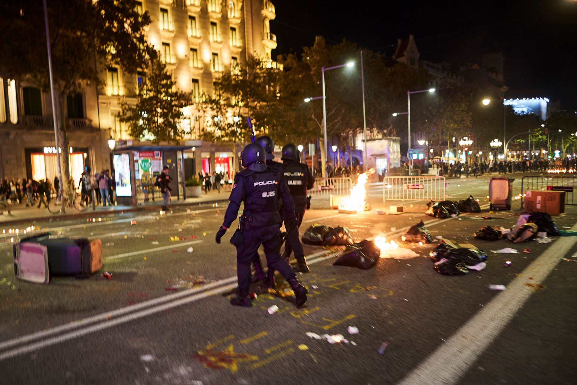 Las UIP de la Policía se emplearon a fondo durante toda la noche en Barcelona y otros puntos de Cataluña como Tarragona o Gerona
