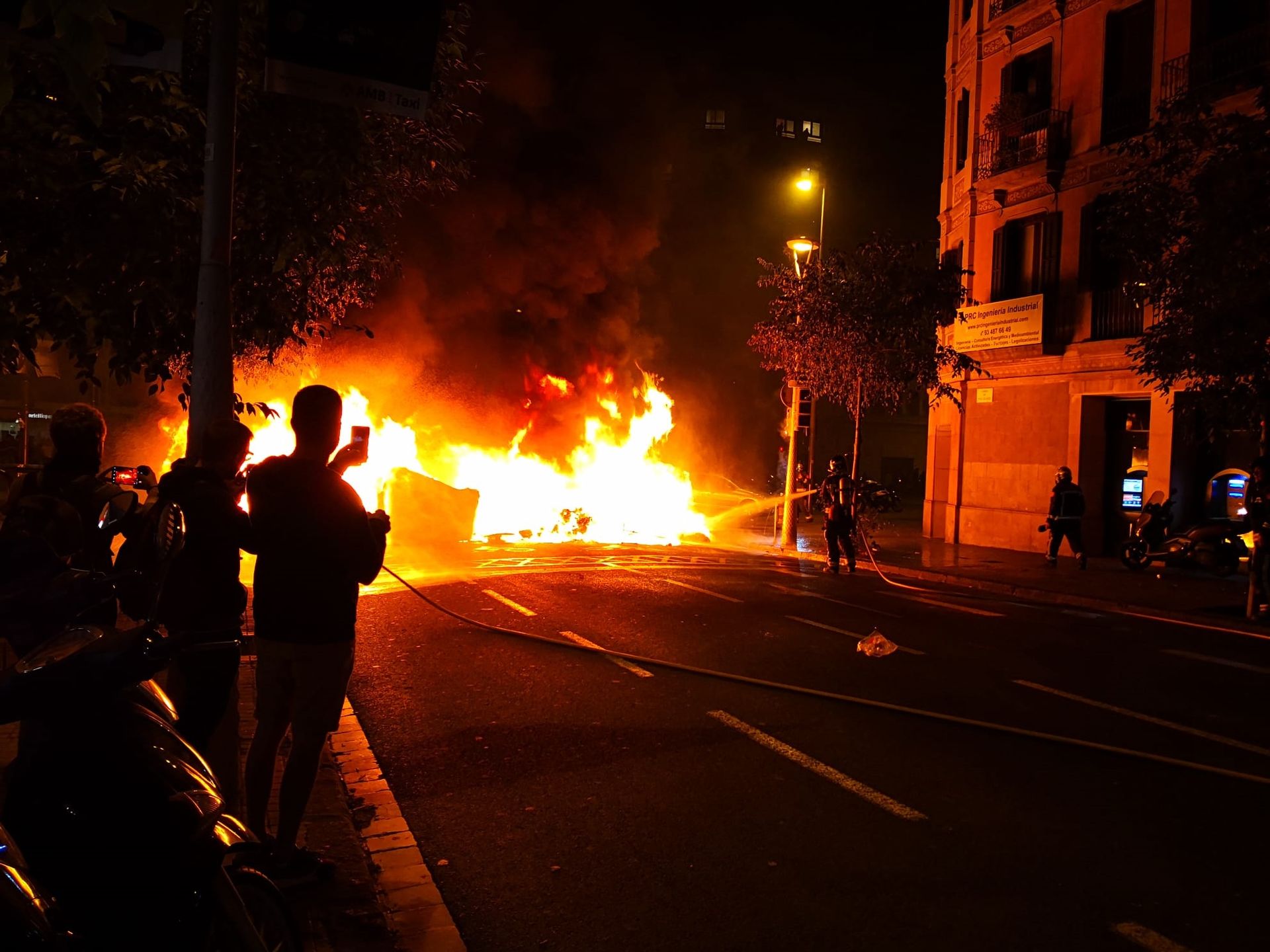 Los grupos separatistas que incendiaron Barcelona instalaron barricadas con contenedores ardiendo