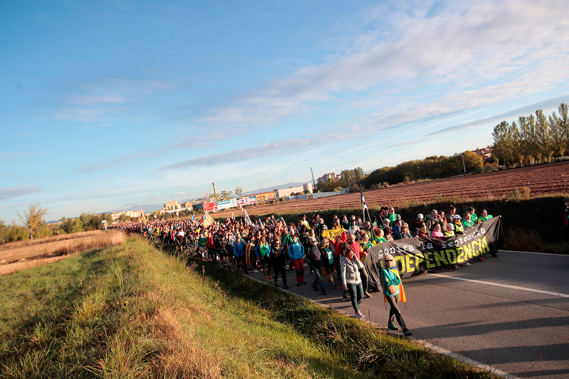 Una de las marchas separatistas que acabará el viernes en Barcelona poco después de salir de Vic.