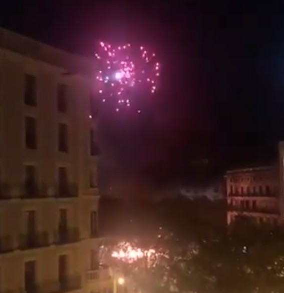Durante las violentas protestas de radicales independentistas durante la noche del miércoles en Barcelona, los CDR lanzaron un cohete al helicóptero de los Mossos. Estalló a pocos metros de este.