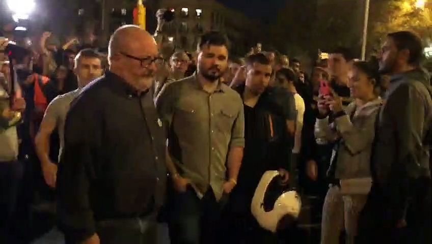 Rufián aparece en Arco de Triunfo mucho después de la desconvocatoria de la manifestación y los asistentes le insultan y abuchean.
