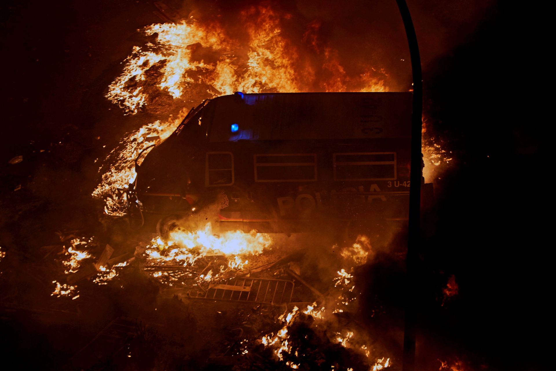 Cinco noches consecutivas de violencia en Barcelona. Y un día de asalto al aeropuerto de El Prat. Pero sin duda la noche más cruenta fue la del viernes. La Policía se vio desbordada, y temiendo por su vida. Un agente está, de hecho, muy grave en el hospital.