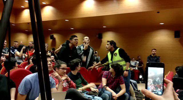 Estudiantes de extrema izquierda han boicoteado a Iglesias con un escrache en la primera visita del líder podemita a su antigua facultad (Ciencias Políticas de la UCM) desde que es vicepresidente.