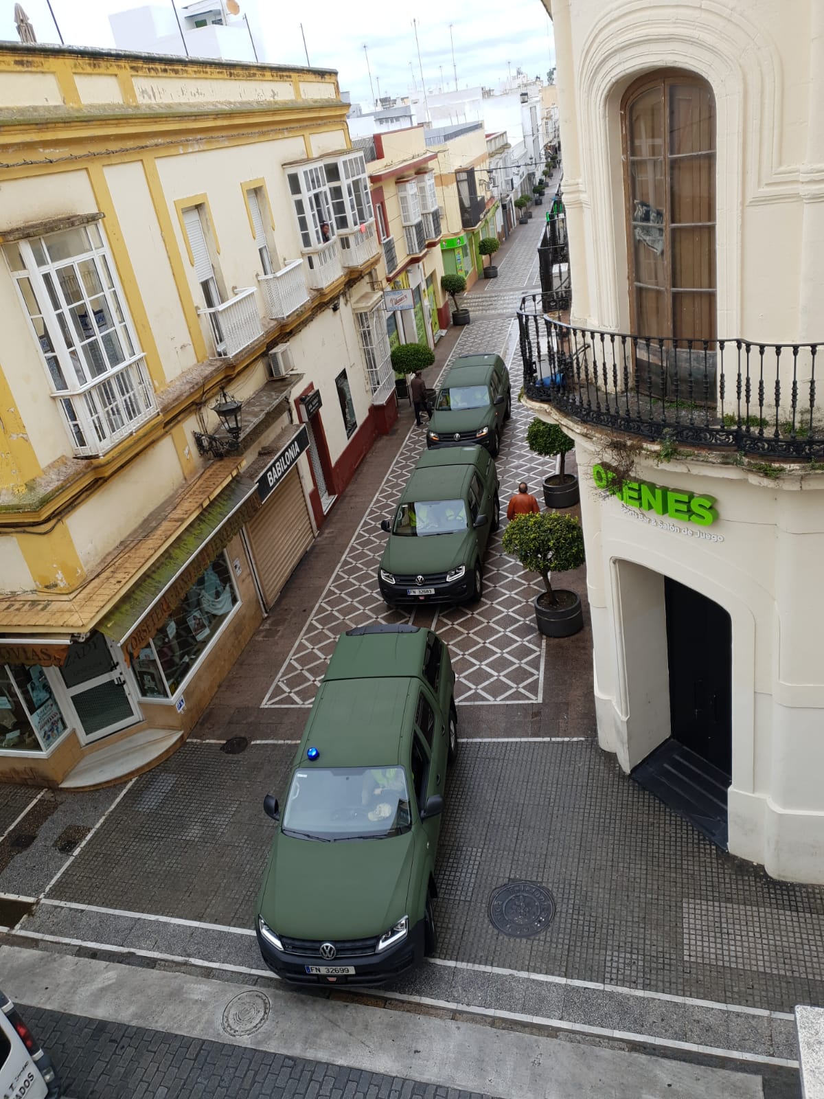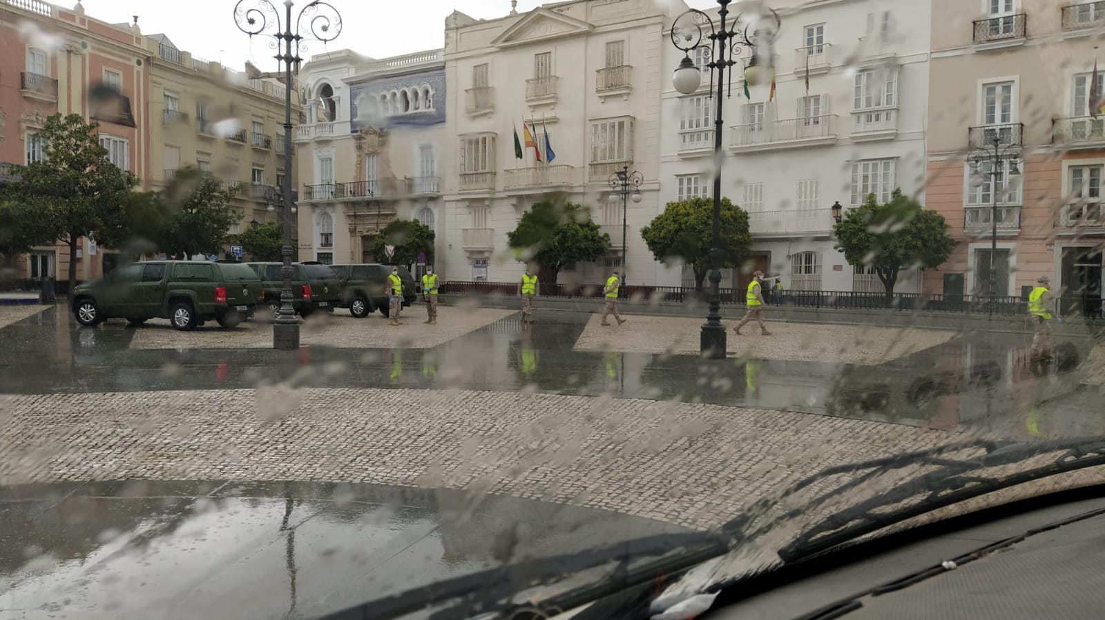 La policía naval de Infantería de Marina en las ciudades de Cádiz, San Fernando y El Puerto de Santa María. Realizan labores de reconocimiento y limpieza en zonas críticas.