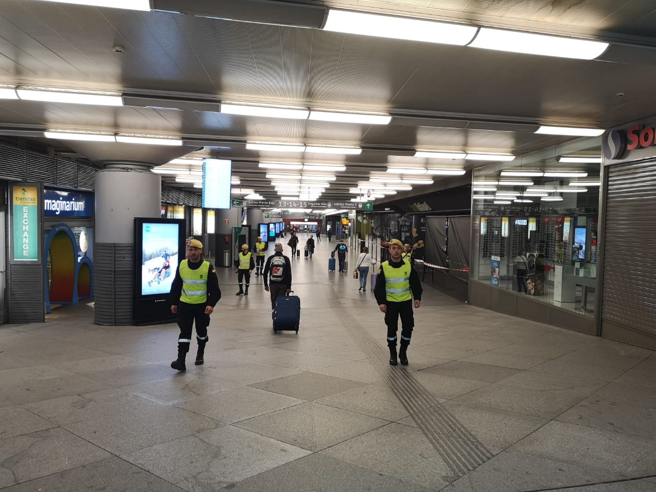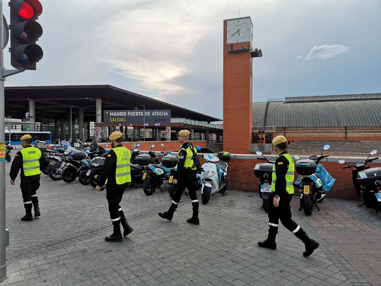 Varios militares de la UME en el interior de la estación de Atocha en Madrid.