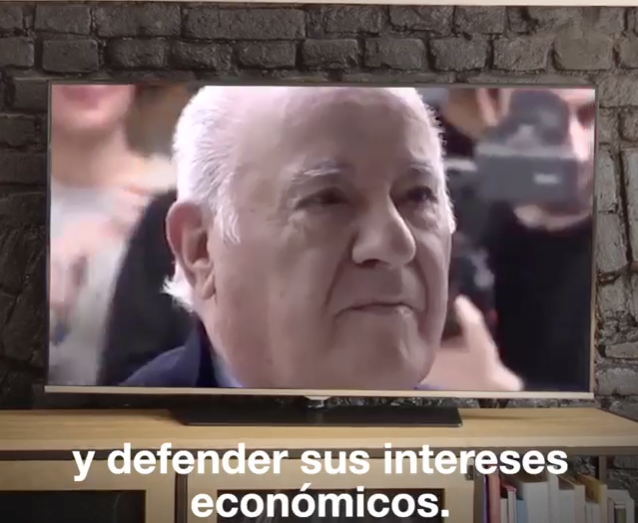 Mientras el vídeo sigue lanzando los mantras populistas, las imágenes de Rajoy, Aznar, Ignacio González o Cristina Cifuentes se suceden. Hasta Santiago Abascal aparece como el nuevo en unirse a ese "neoliberalismo salvaje que nos ha llevado hasta aquí".