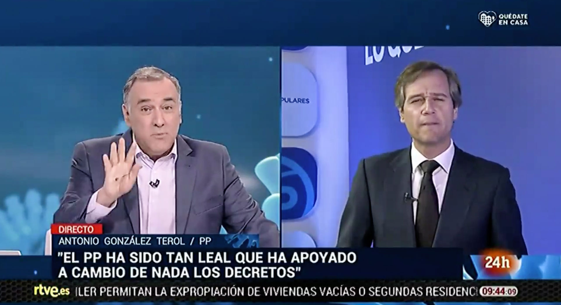 El propio González Terol, en un notable intento por contestar a dichas afirmaciones ha enumerado tres ejemplos de la evidente manipulación que se está llevado a cabo desde TVE con respecto a la crisis del coronavirus, "don Xavier, pues me va a permitir preguntarle entonces porqué el 31 de marzo, por ejemplo, se entrevistó en la televisión pública al señor Barbero, concejal de Podemos en el Ayuntamiento de Madrid, sin advertir su filiación política o por qué el 12 de marzo se entrevistó al señor Guillén del Barrio como si fuera un simple enfermero representando a la sanidad madrileña, cuando es un candidato de Podemos ocultando su filiación política y no dando la oportunidad de una réplica al gobierno de la Comunidad de Madrid".