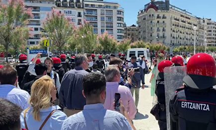 Grupos de antifascistas y radicales increpan y se enfrentan a dirigentes de Vox tras un mítin en San Sebastián