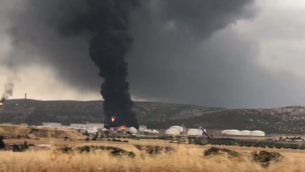 Cae un rayo en un tanque de combustible de la petroquímica. Se ha activado el Plan de Emergencia Interior de Repsol y también el Plan de Emergencia exterior de Puertollano, pero solo en fase de alerta. Seguiremos informando pic.twitter.com/LBFtLVHrNO