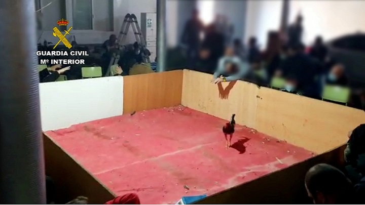 La Guardia Civil ha disuelto en El Ejido (Almería) una pelea de gallos ilegal en la que se concentraban 89 personas, entre ellas menores de edad, quienes incumplían las medidas relativas a la crisis sanitaria por covid-19 de distancia social, uso de mascarilla y limitación de aforo, algunas de ellas portando armas y drogas, por lo que se han interpuesto hasta 260 denuncias.