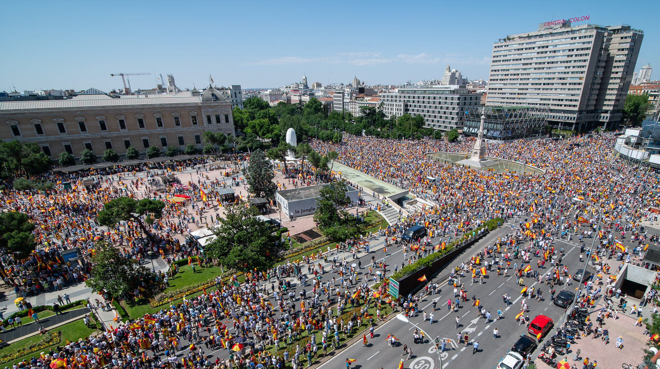 Espectacular vista aérea de la Plaza de Colón con miles de personas reunidas para protestar contra los indultos de Pedro Sánchez a los golpistas del 1-O.