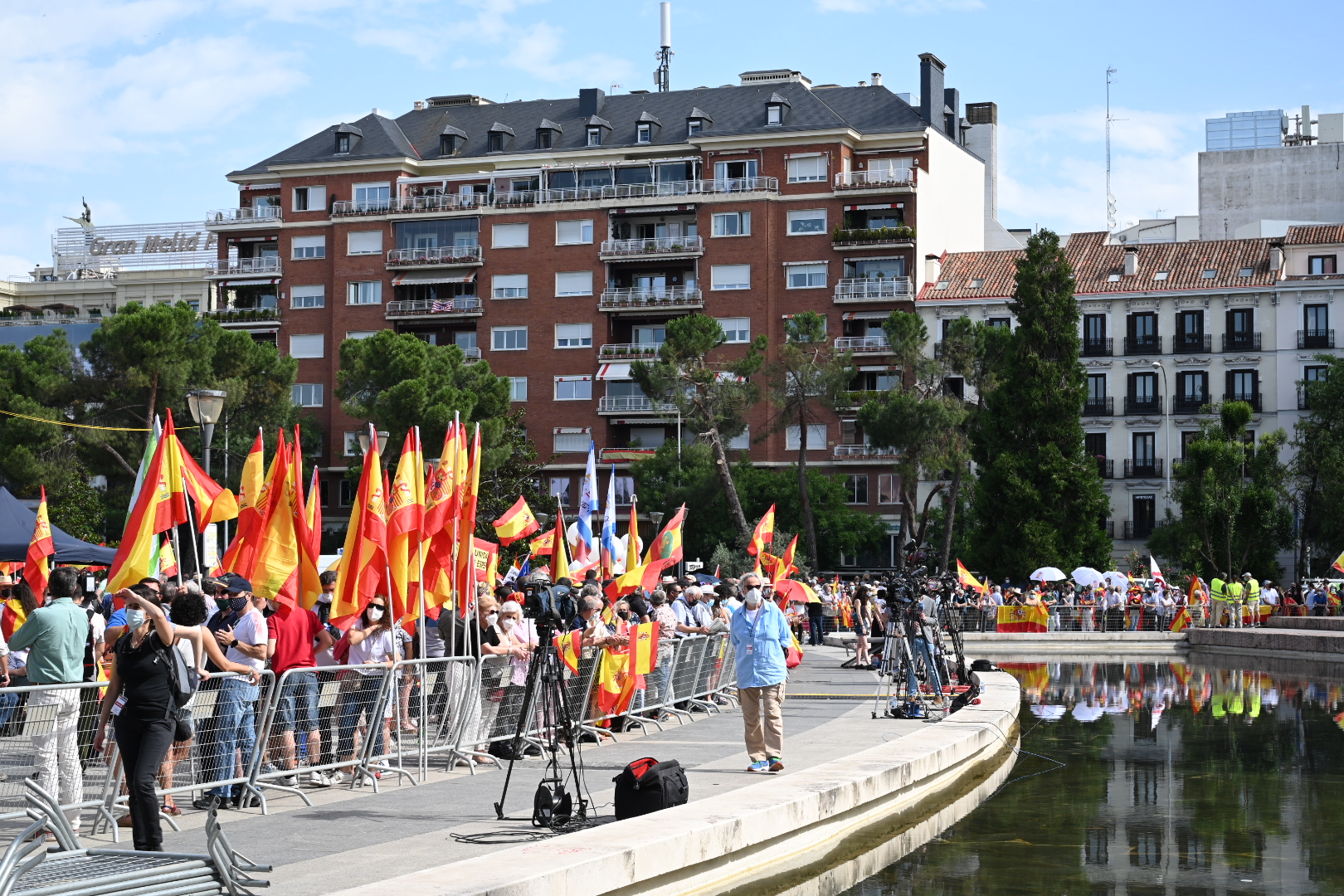 Miles de personas llenan la Plaza de Colón antes de que empiece la manifestación contra los indultos de Pedro Sánchez contra los golpistas.