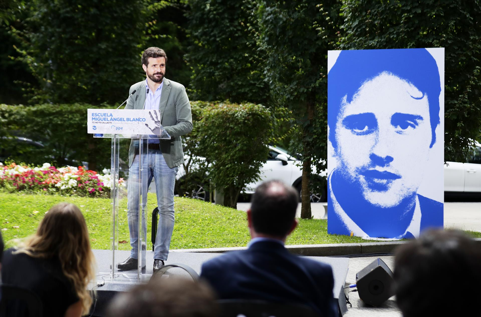 Casado ha realizado estas manifestaciones en Ermua (Vizcaya), a donde se ha desplazado para participar en el acto de clausura de la Escuela de Miguel Ángel Blanco. Previamente, junto a dirigentes del PP vasco, entre ellos su presidente, Carlos Iturgaiz, ha realizado una ofrenda floral en el monumento que recuerda al exedil del PP de este municipio asesinado hace 24 años por ETA, tras tres días de secuestro.