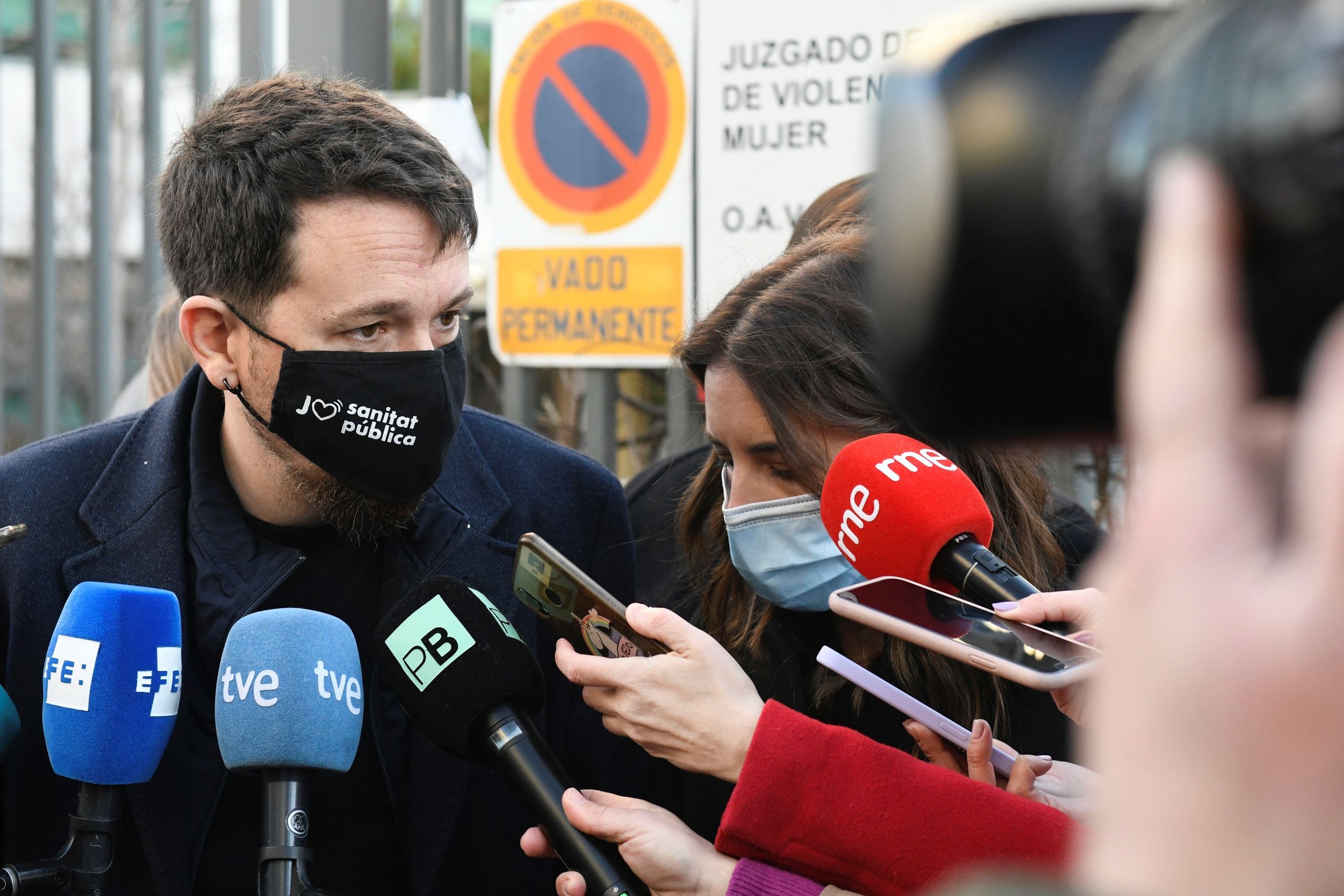 Pablo Iglesias e Irene Montero han acudido juntos a la primera vista del juicio contra el periodista Alejandro Entrambasaguas de OK Diario, a quien denunciaron por acosar a sus hijos y a su niñera.