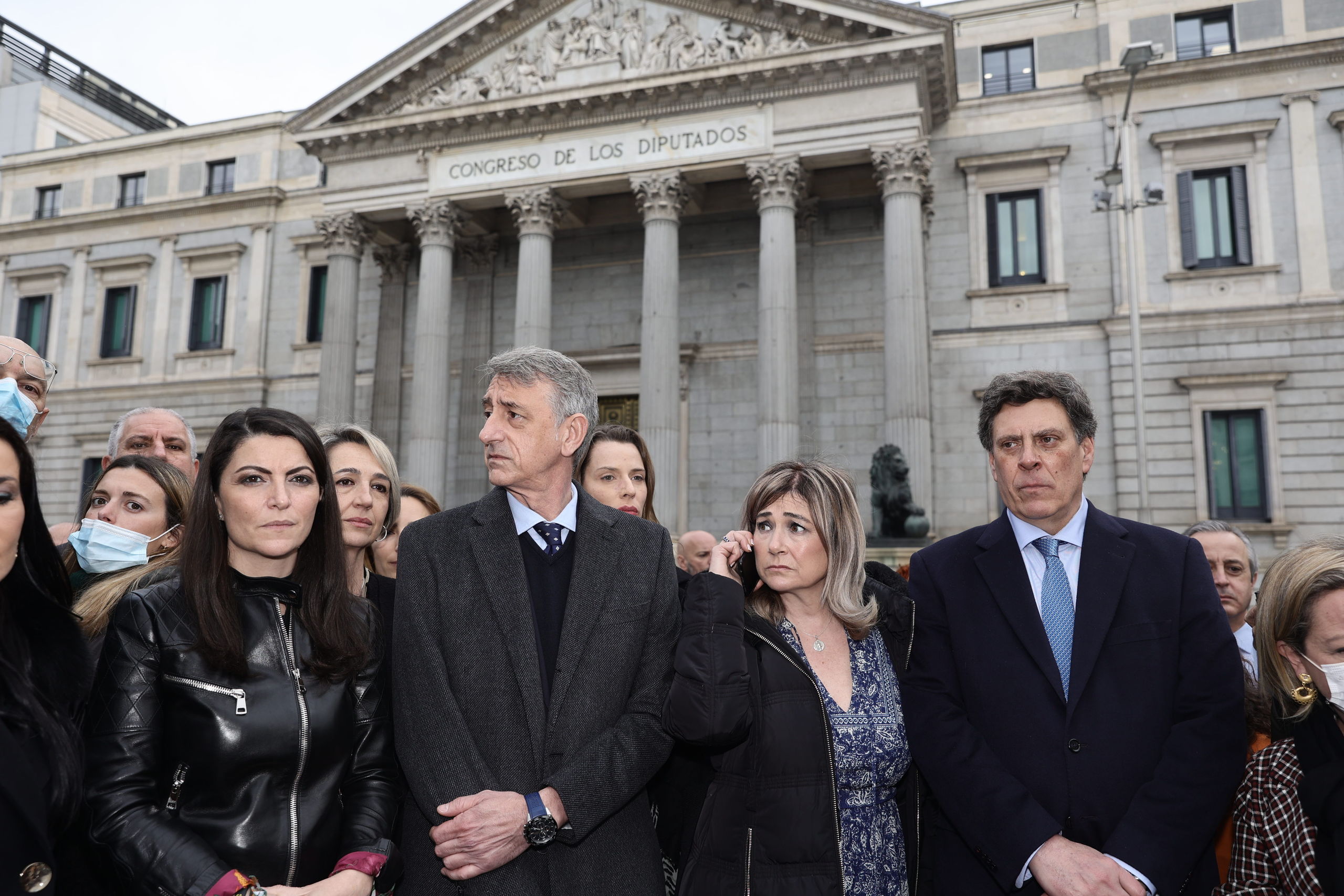 Las víctimas de los asesinatos de sus hijas estaban acompañadas por los firmantes de la propuesta: la portavoz del PP, Cuca Gamarra; el portavoz de Cs, Edmundo Bal; y los diputados del Grupo Mixto Sergio Sayas, Ana Oramas (Coalición Canaria) e Isidro Martínez Oblanca (Foro). También les ha acompañado la secretaria general del Grupo Vox en el Congreso, Macarena Olona, pese a que su partido no suscribía la iniciativa, que sí apoya. Los de Abascal intentarán promover la cadena perpetua para estos casos.