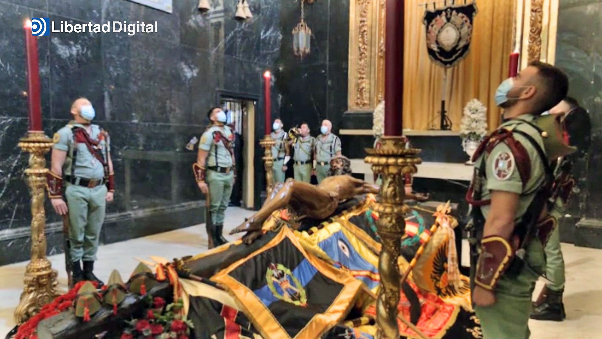 La expectación es máxima y los fieles y devotos que visitan la capilla recogen esa imagen única, la de una guardia con mascarilla. Comprenden que son las normas anticovid y que los legionarios, aunque estén a distancia suficiente, deben de cumplir con los requisitos que exigidos por las autoridades sanitarias.
