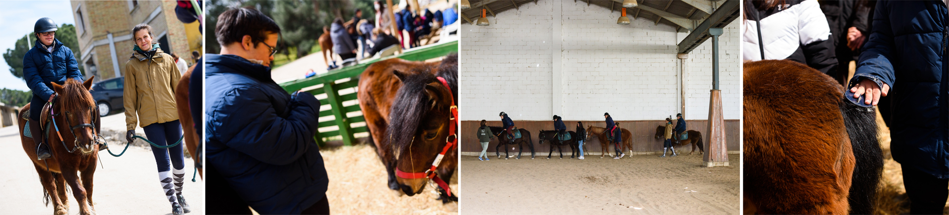 Una vez allí, los chicos se dividen en dos grupos: uno monta a caballo y otro se dedica a limpiar y dar de comer a los animales. "Aprenden a cuidarles, a colaborar ente ellos y a tener paciencia, porque los caballos también tienen días un poco torcidos -nos explica Álvaro Palomo, miembro del club hípico Yabusán-. Además, aquí se van acostumbrando a los ruidos, a toda la gente que entra y sale de los establos, a las diferentes texturas e incluso a que no pasa nada por ensuciarse, que es algo que a veces no llevan muy bien"