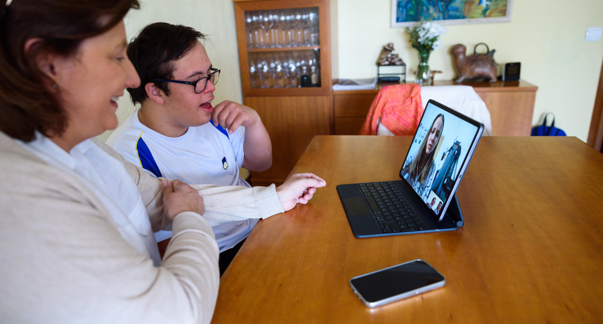 "¡Mamá! -grita Joaquín nada más bajarse del autobús- Gracias por venir a mi cole". Faltan unos minutos para las cinco de la tarde. Es la hora de la merienda y Joaquín aprovecha para jugar -y pelear- con su hermano Javier y para hablar con su hermana Sofía, que está terminando la carrera en EEUU. Falta Carolina, o Carito como la llaman cariñosamente. Ella está estudiando en Navarra y, muy a su pesar, ha enlazado una clase con otra, así que hoy no ha podido sumarse a la videollamada.