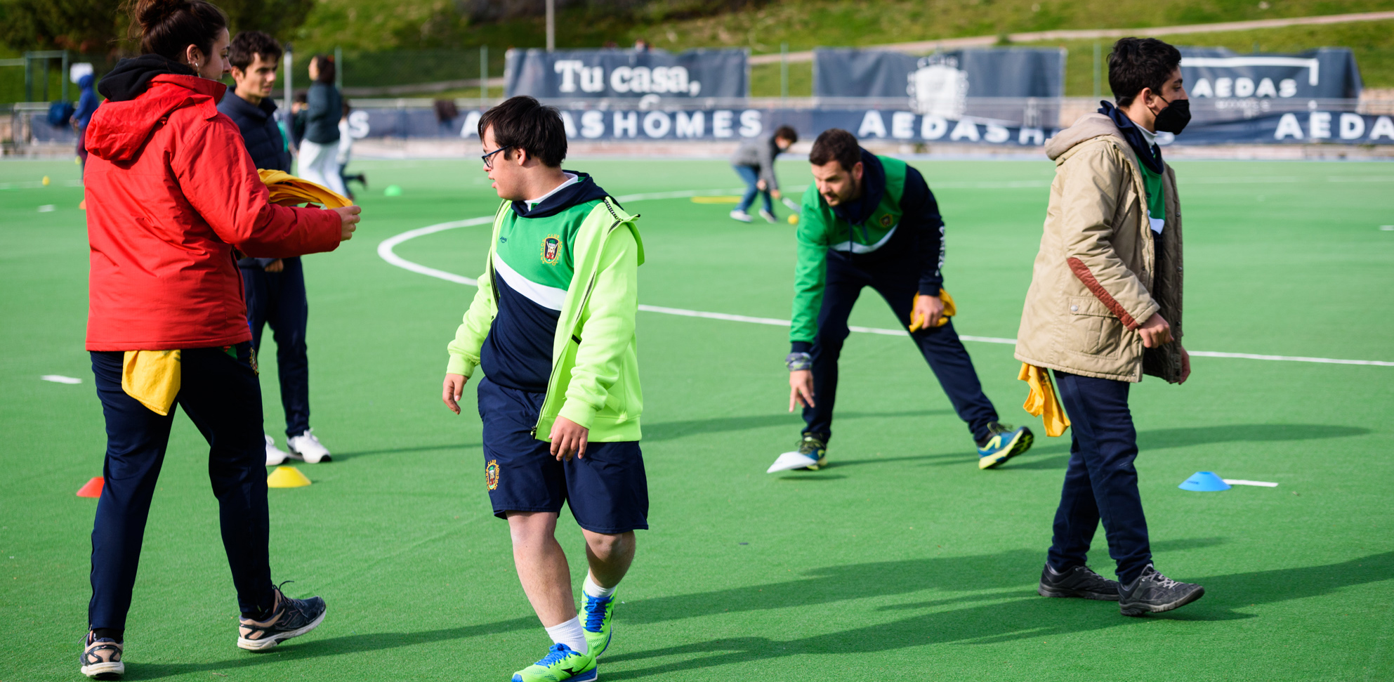 Después de resumirle a Sofía todo lo que ha hecho durante el día, Joaquín nos invita a acompañarle a Hockey, una de las actividades extraescolares que realiza durante la semana, además de natación, fútbol y clases de teatro. Al entrenamiento de hoy acude Javier Sánchez, presidente del Club Hockey Pozuelo. "El club tiene 25 años de historia y tenemos 258 jugadores de todas las edades. La división de Special Hockey se creó en 2015 y este año incluso tenemos una jugadora que va a competir en la categoría de Special del campeonato del mundo femenino", nos cuenta orgulloso.