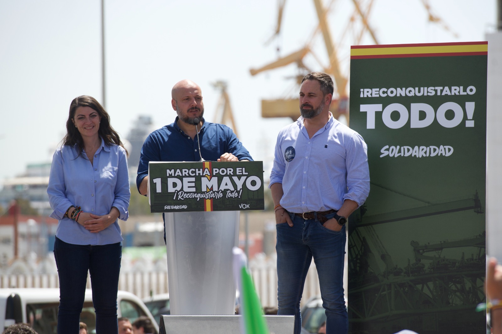 Su primer acto en Andalucía tras ser nombrada candidata de Vox a la Junta lo ha protagonizado Macarena Olona en Cádiz con motivo del Primero de Mayo, donde ha aparecido por sorpresa. En el acto ha participado también el presidente de Vox, Santiago Abascal, y el secretario general del sindicato Solidaridad, Rodrigo Alonso.