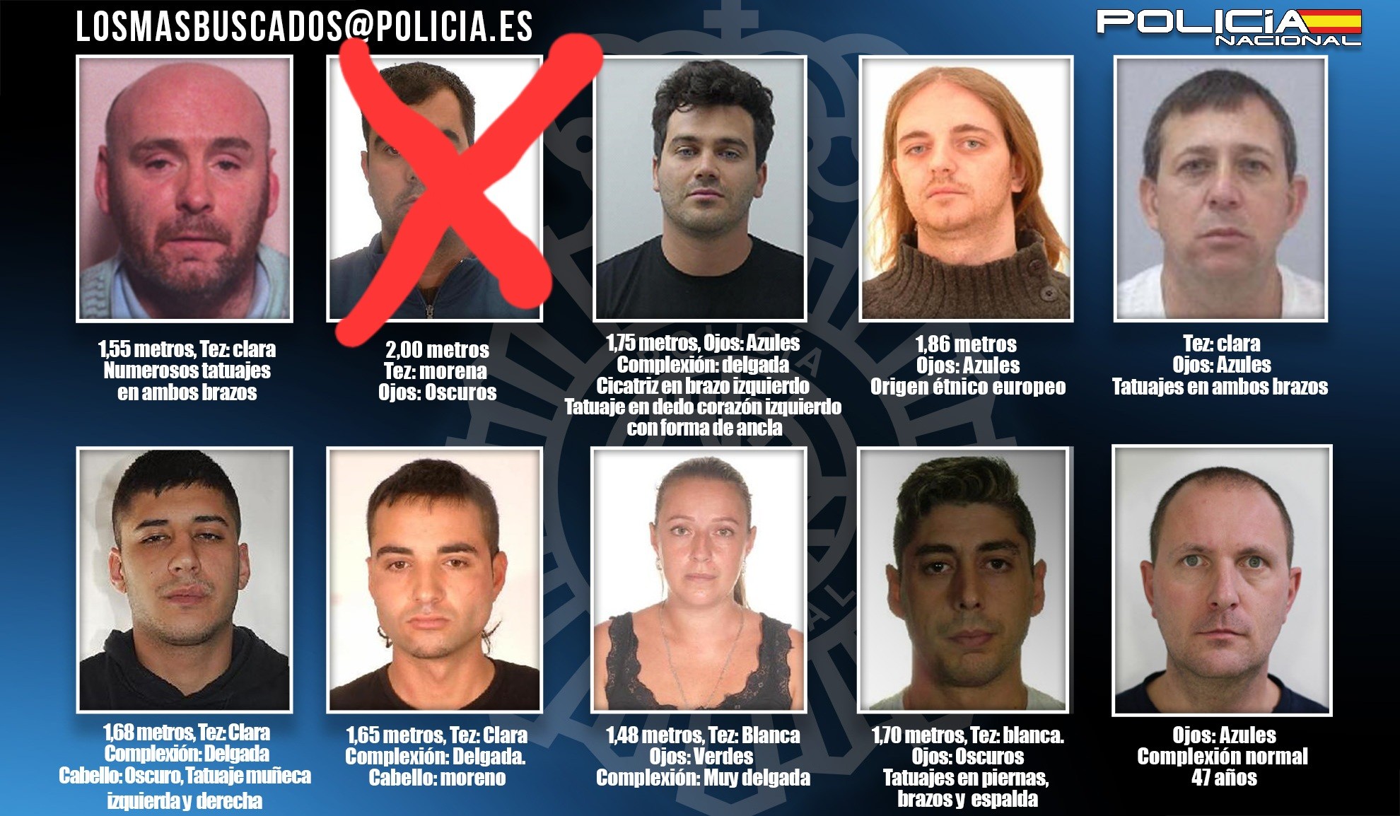 La colaboración ciudadana fructifica. La Policía Nacional pidió el pasado lunes la ayuda de los ciudadanos para localizar a los 10 fugitivos más peligrosos de nuestro país. No dudó en sacar un cartel con el rostro de todos ellos y algunas de sus características físicas más llamativas. También facilitó a los medios de comunicación el negro historial criminal que todos ellos tienen a sus espaldas.