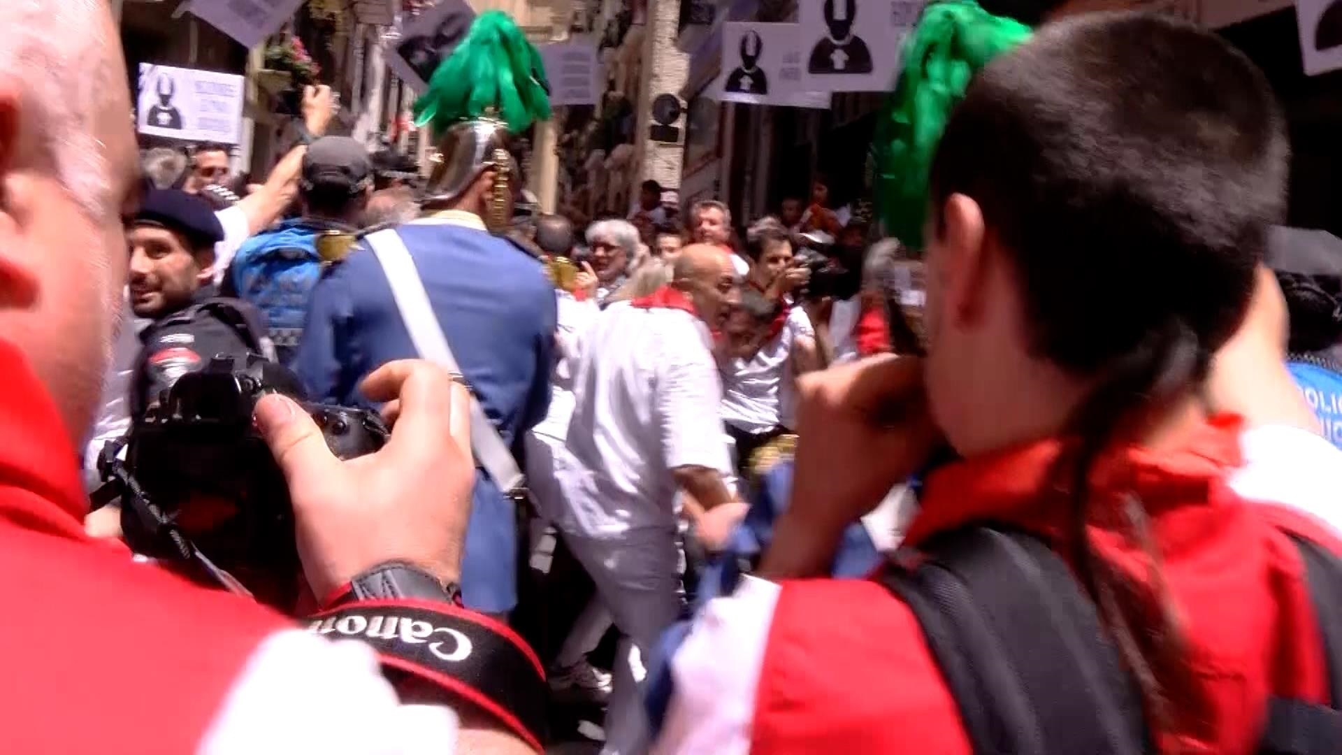 Tres agentes de la Policía Municipal de Pamplona, que custodiaban a la corporación municipal durante la procesión de San Fermín, han resultado heridos este jueves en unos altercados provocados por proetarras que se han desarrollado a la altura de la calle Curia de la capital navarra.