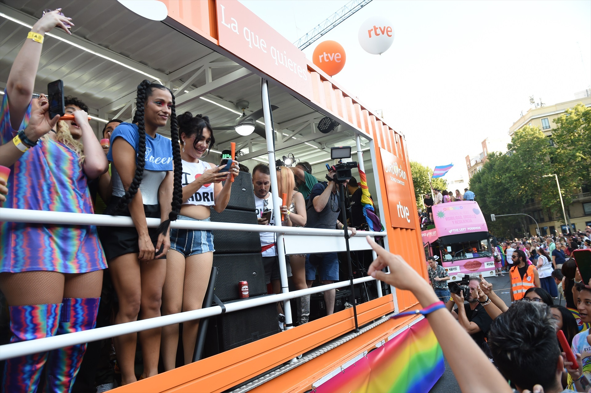 Una de las carrozas desfilando en la manifestación del Orgullo 2022 en Madrid.