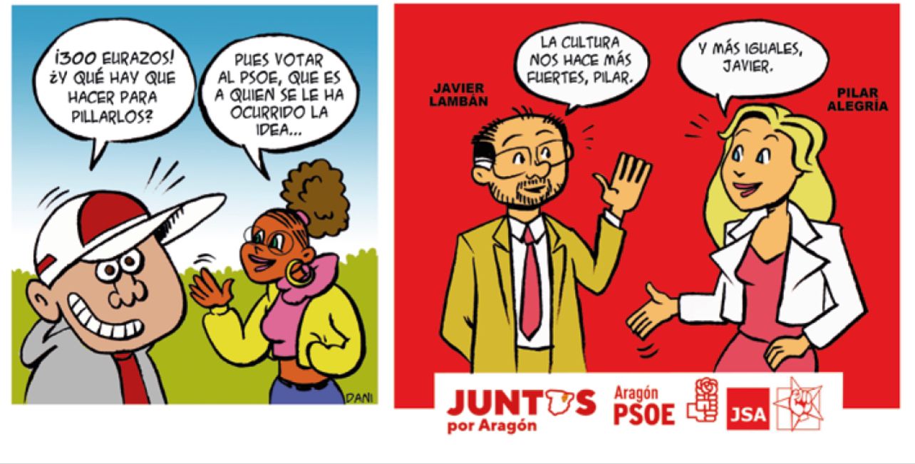 Una de sus campañas más polémicas por aquel entonces fue con el PSOE de Aragón de 2019 cuando presentó junto a Lambán un "bono cultural joven" para captar votos a golpe de talonario: "¿Quieres pillar 300 eurazos? Pues vota al PSOE", rezaba el cartel.