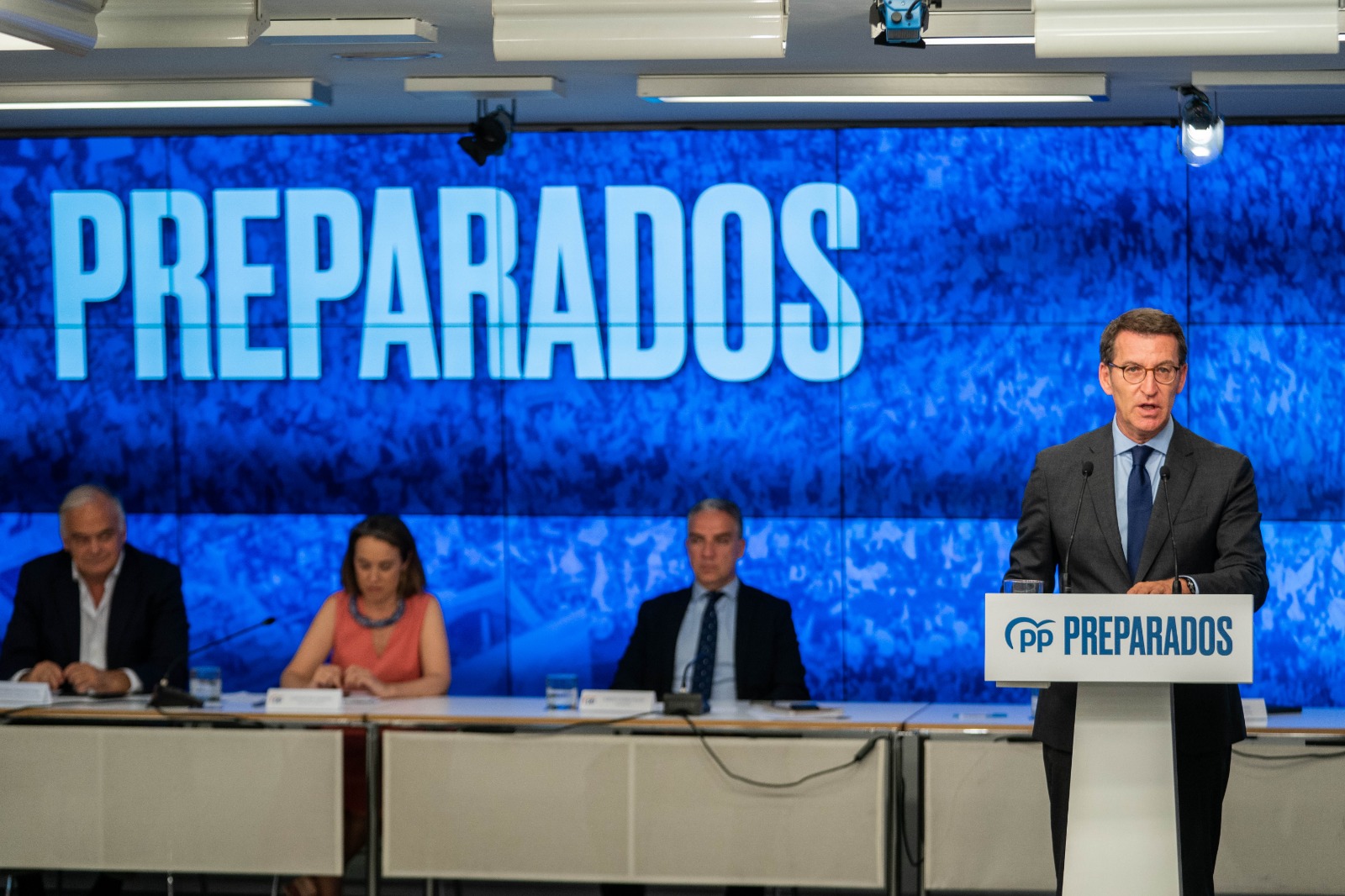 Frente al Ejecutivo socialista, Feijóo se ha presentando como la persona que ha "venido a darle a España la política que creo que merece". "No he salido de mi casa, no he traído a mi familia aquí, no he renunciado a gobernar con mayoría absoluta para darle a España más de lo mismo. He venido a darle a España la política que creo que merece mi país y exige un cambio en el fondo y en las formas y os pido que me ayudéis a conseguirlo", ha sentenciado ante la dirección al completo de su partido que ha reunido hoy en Génova.