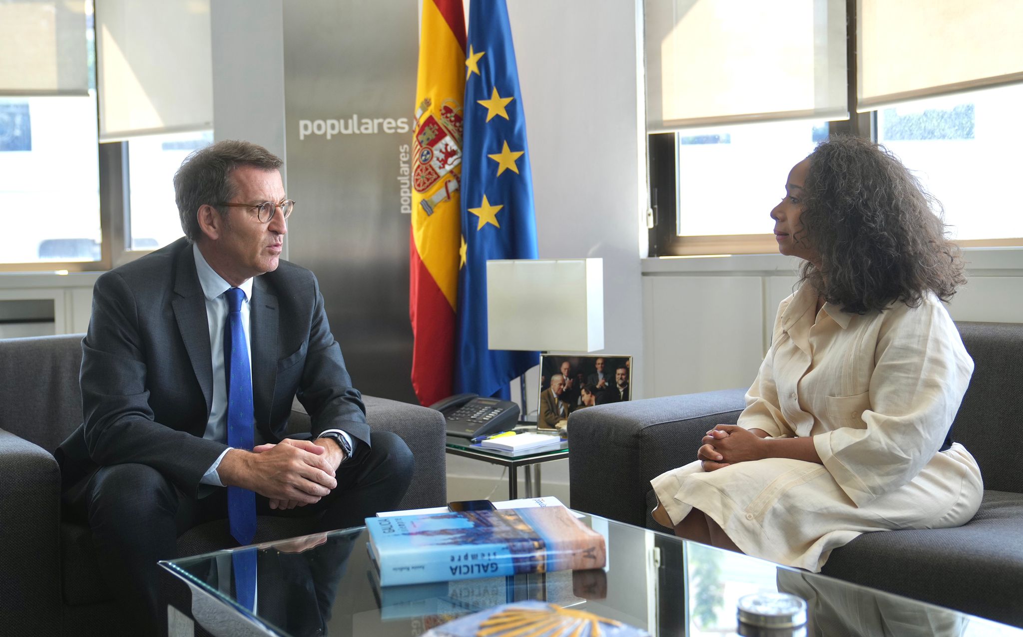 El presidente del Partido Popular, Alberto Núñez Feijóo, ha mantenido este miércoles dos encuentros de especial relevancia. En primer lugar, se ha reunido con la embajadora de EE.UU. en España, Julissa Reynoso.